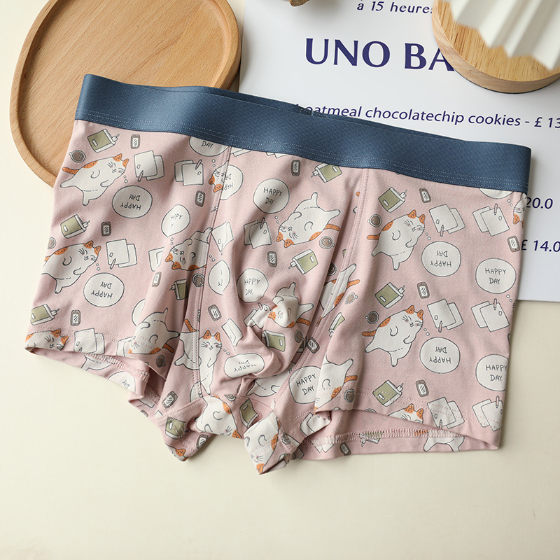 재미 고양이 인쇄 커플 속옷 모달 부드럽고 편안한 남녀 복서 짧은 속옷스토어 가기