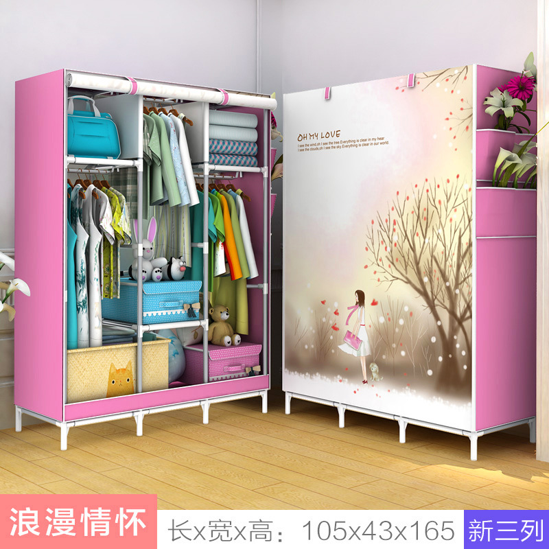 재고 있음 간단한 부직포 싱글 옷장 맞춤형 학생 기숙사 사물함 단단한 나무 접이식 보관 천 옷장