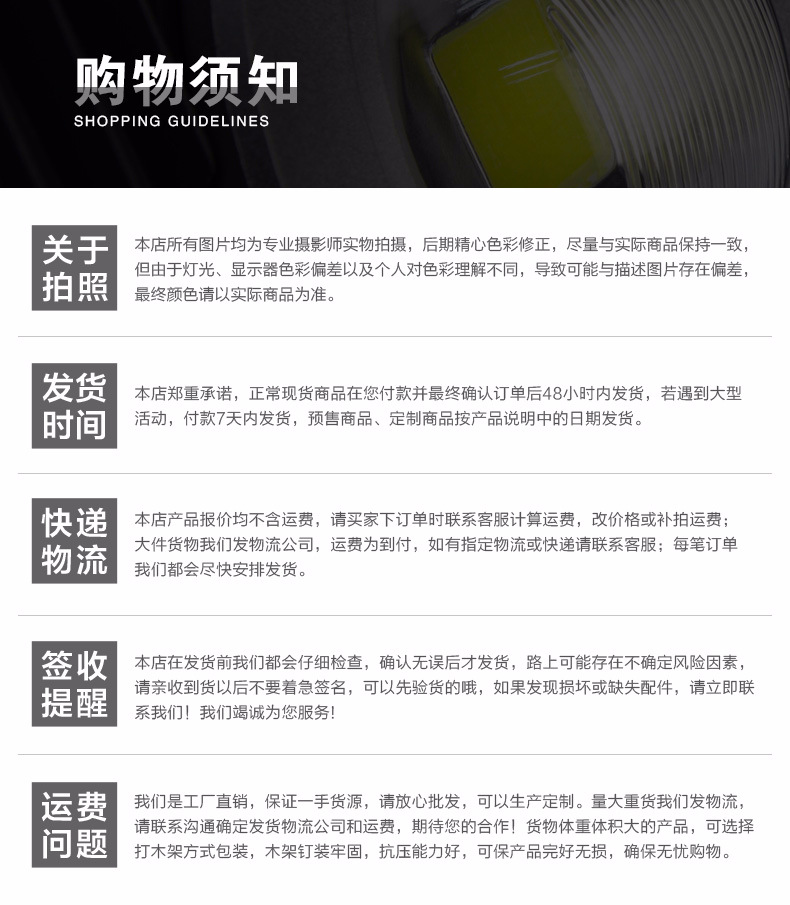 本店产品工厂价,不包邮!本店默认发中通快递、安能快递,请需要发快递的客户在备注栏标注,或者联系客服人员按照实际应付的运费修改运费价格!将比到付省很多。为节省买家运费成本,50个及以上订单将货默认发物流。有指定物流的买家,请在备注里注明物流名称和联系方式,没有指定物流的买家,厂家代找可以到达的物流,运费到付。