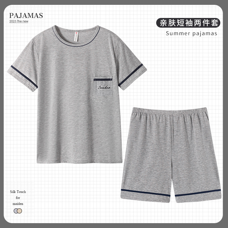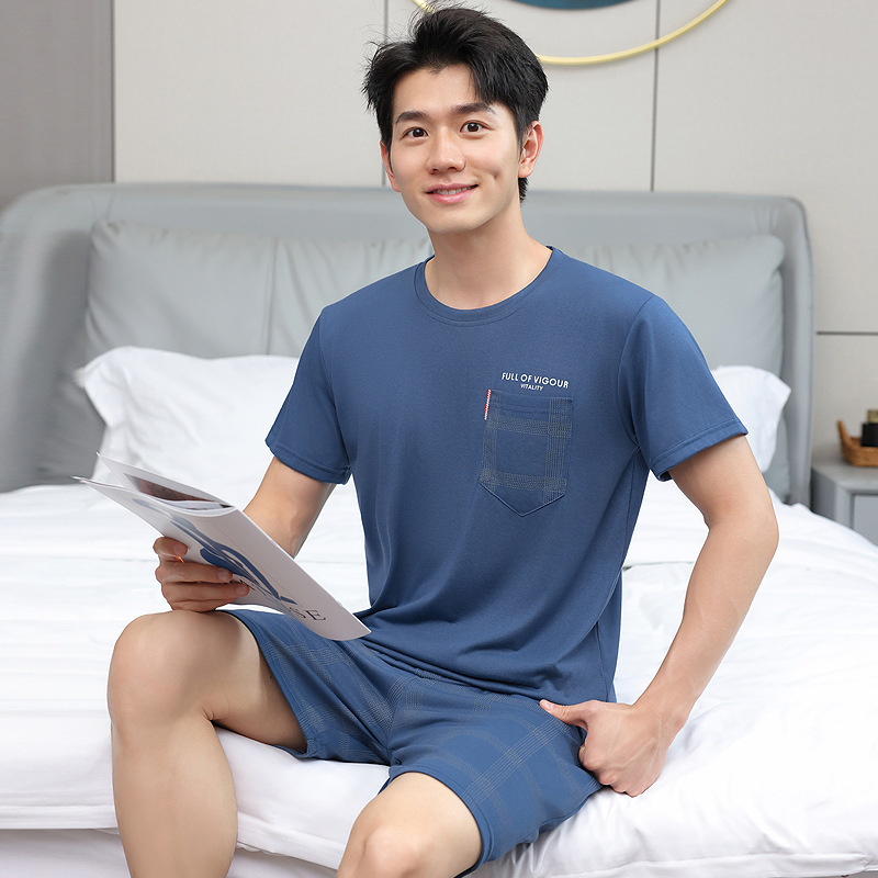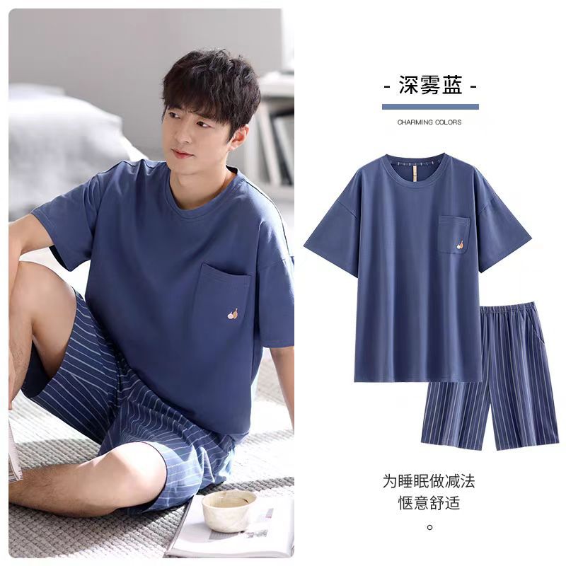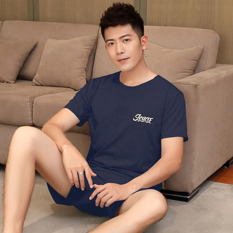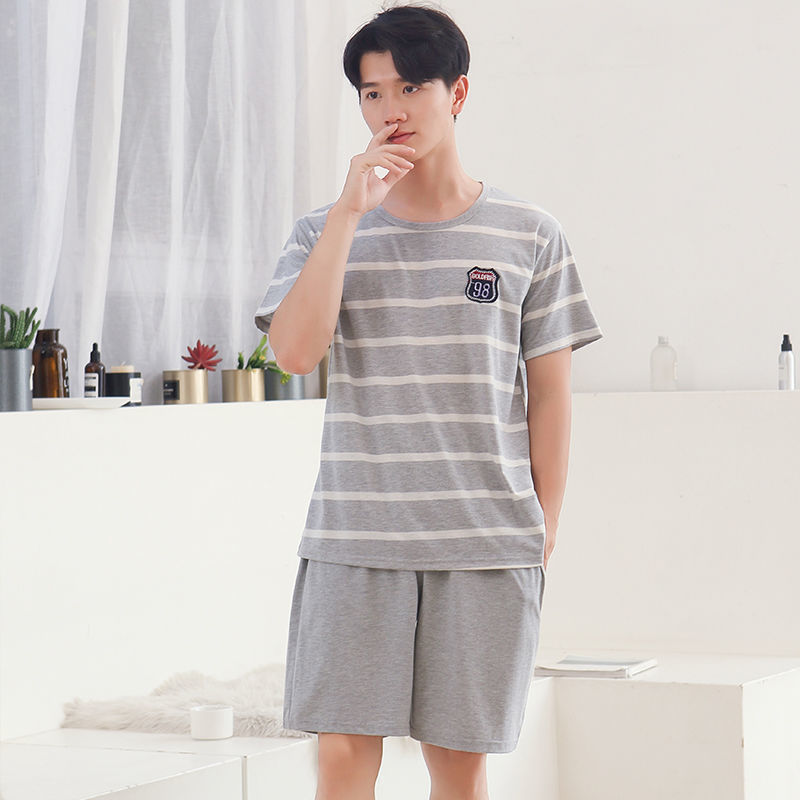 남성 잠옷 여름 플러스 대형 짧은 소매 반바지 남성 잠옷 면 홈 의류 학생 청소년 얇은 세트스토어 가기