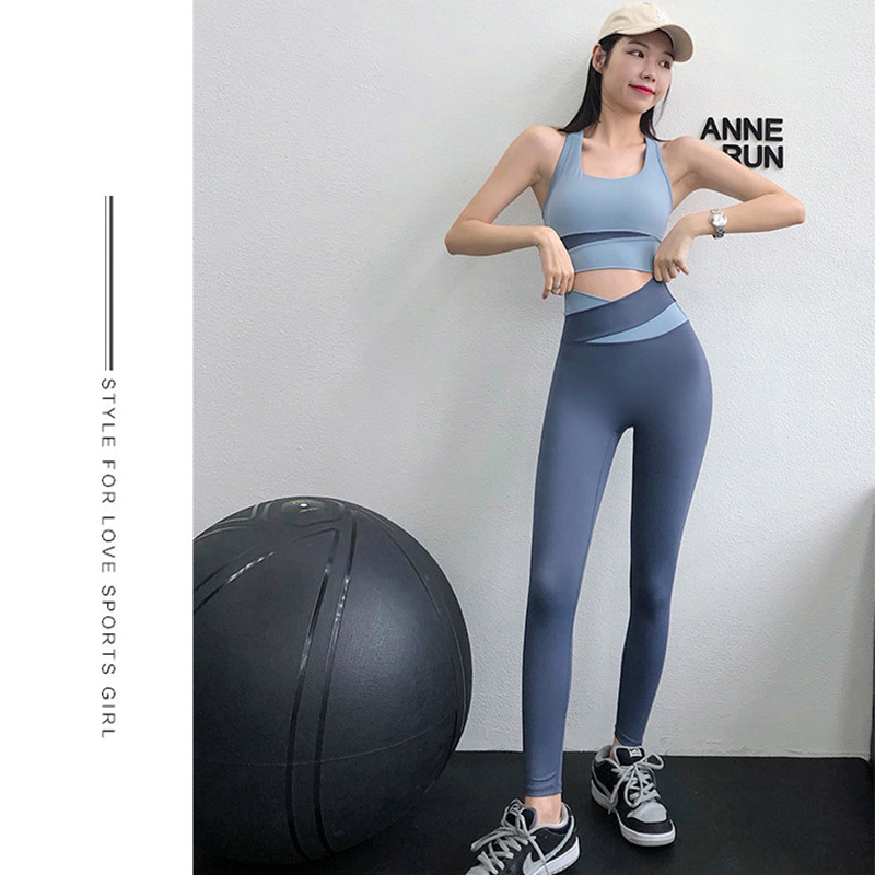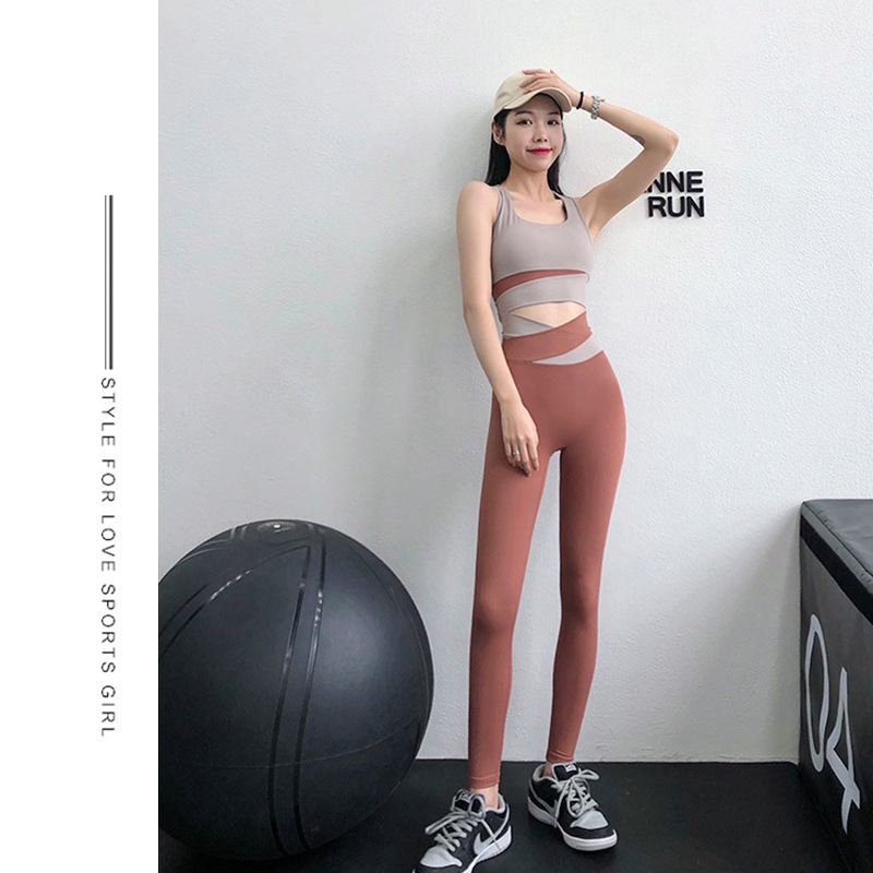 봄과 여름 요가 의류 여성용 타이트 슬림 스트레치 피트니스 조끼 원활한 알몸 스포츠 바지 러닝 트레이닝 투피스 세트