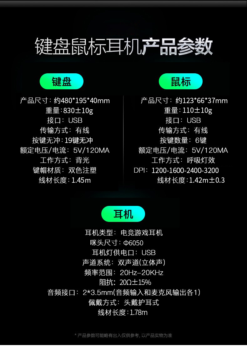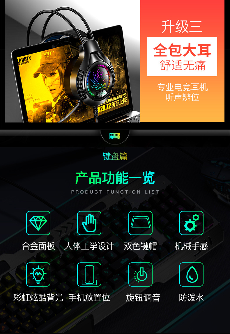 • 금속 패널 노브 조정-검정색 혼합 조명 키보드 + 마우스 + 헤드셋
