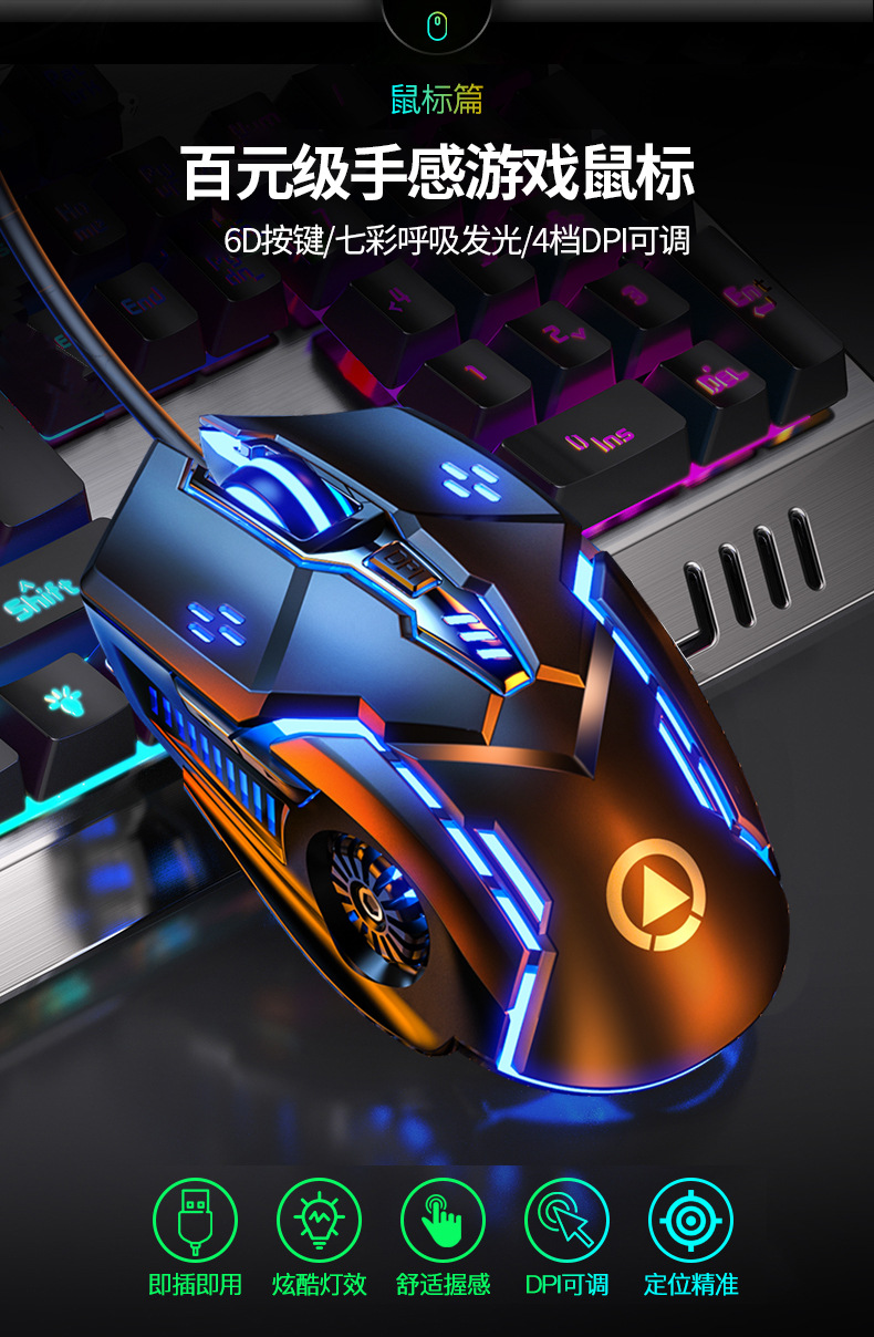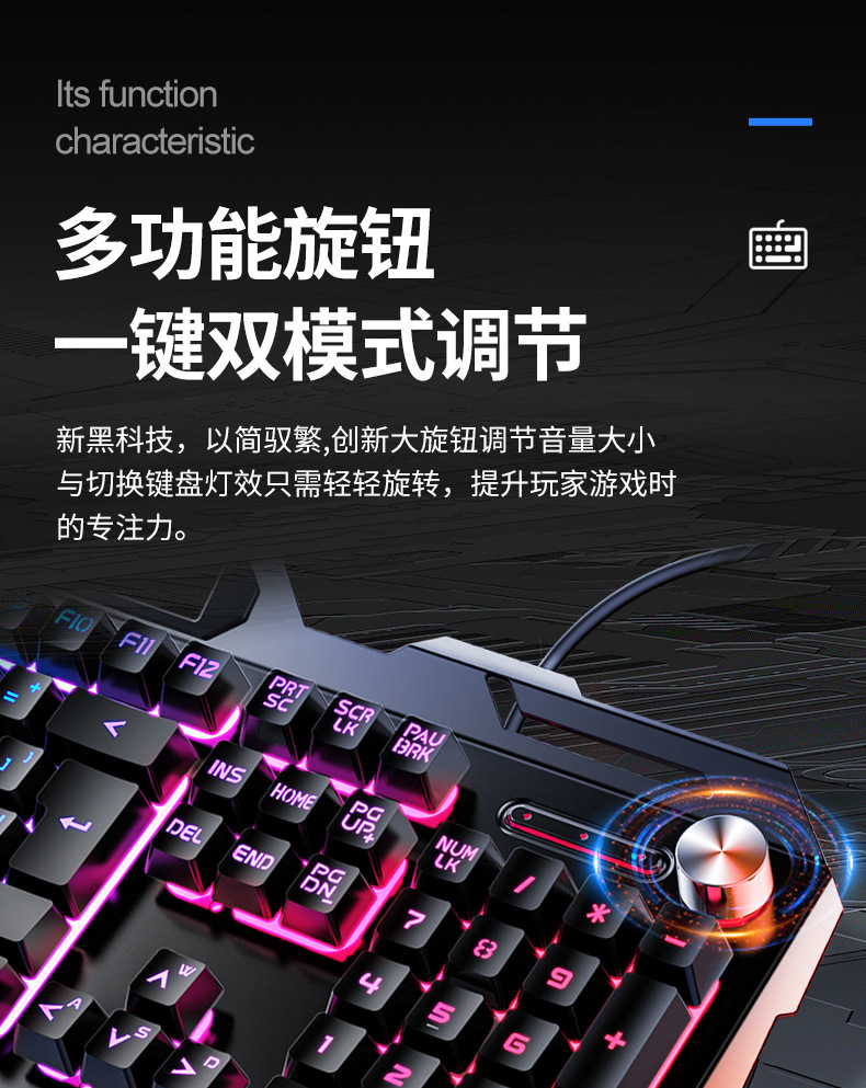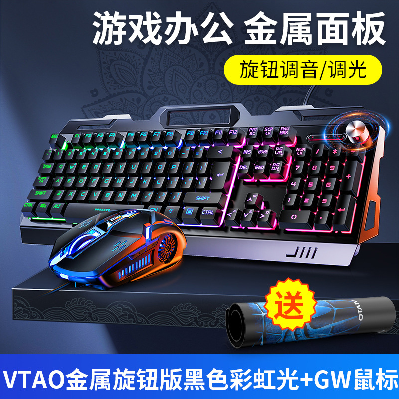 • 금속 패널 노브 조정-검정색 혼합 조명 키보드 + 마우스