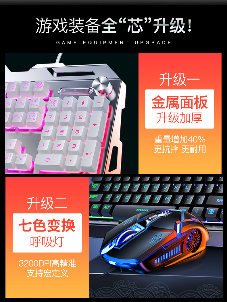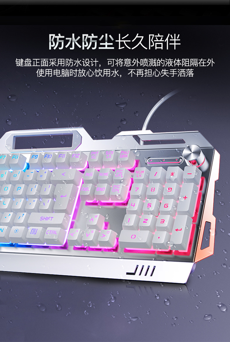 • 금속 패널 노브 조정-흰색 혼합 조명 키보드 + 마우스
