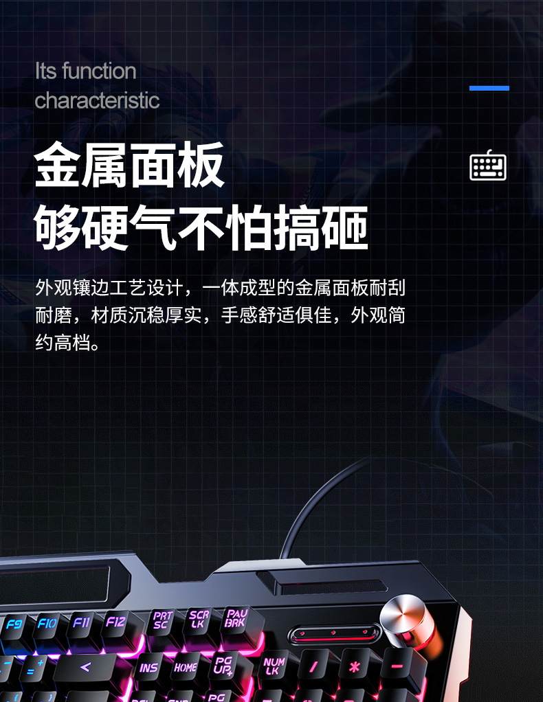 • 금속 패널 노브 조정-검정색 혼합 조명 키보드