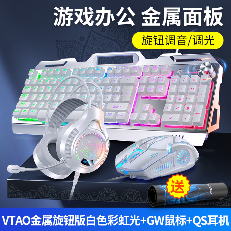• 금속 패널 노브 조정-흰색 혼합 조명 키보드 + 마우스 + 헤드셋
