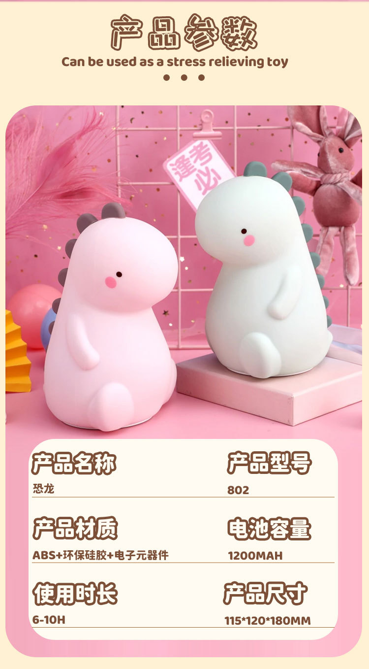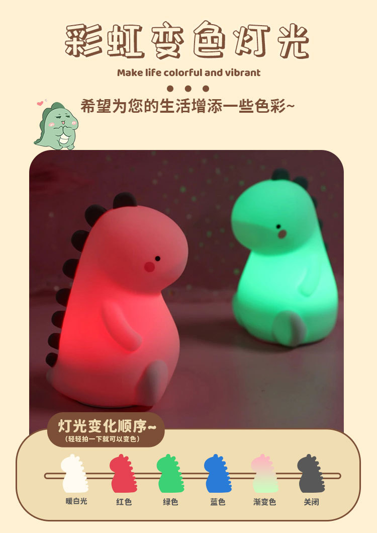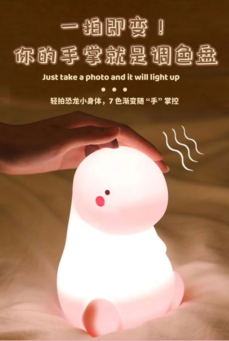 공룡 터치 램프 야간등 USB 충전 창의적인 야간등 다채로운 조명 실리콘 터치 램프 제조업체 도매스토어 가기