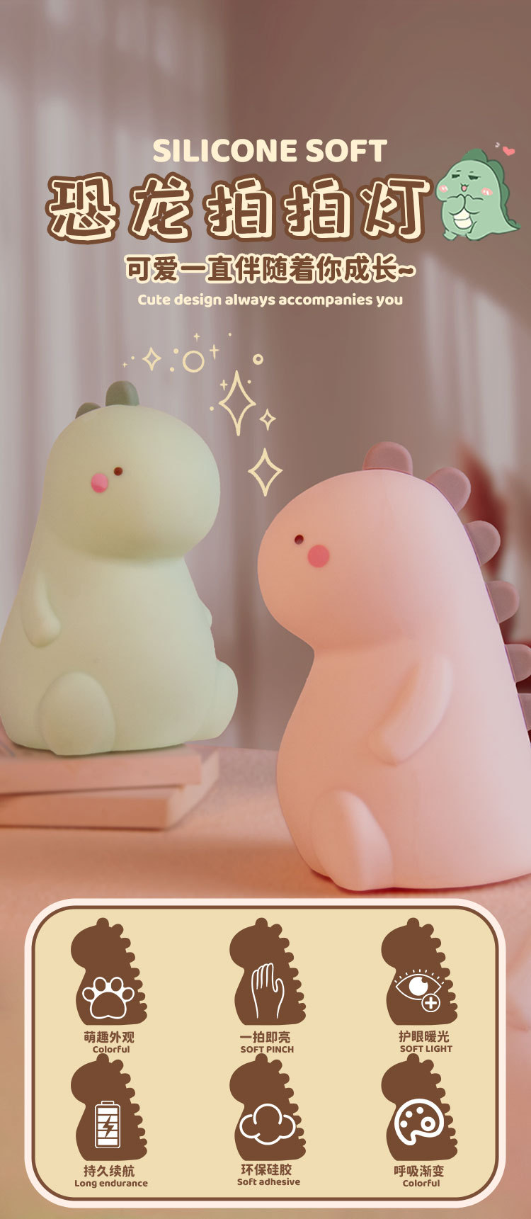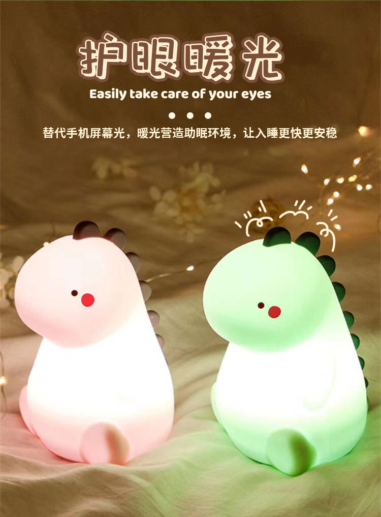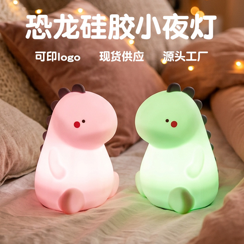 공룡 터치 램프 야간등 USB 충전 창의적인 야간등 다채로운 조명 실리콘 터치 램프 제조업체 도매