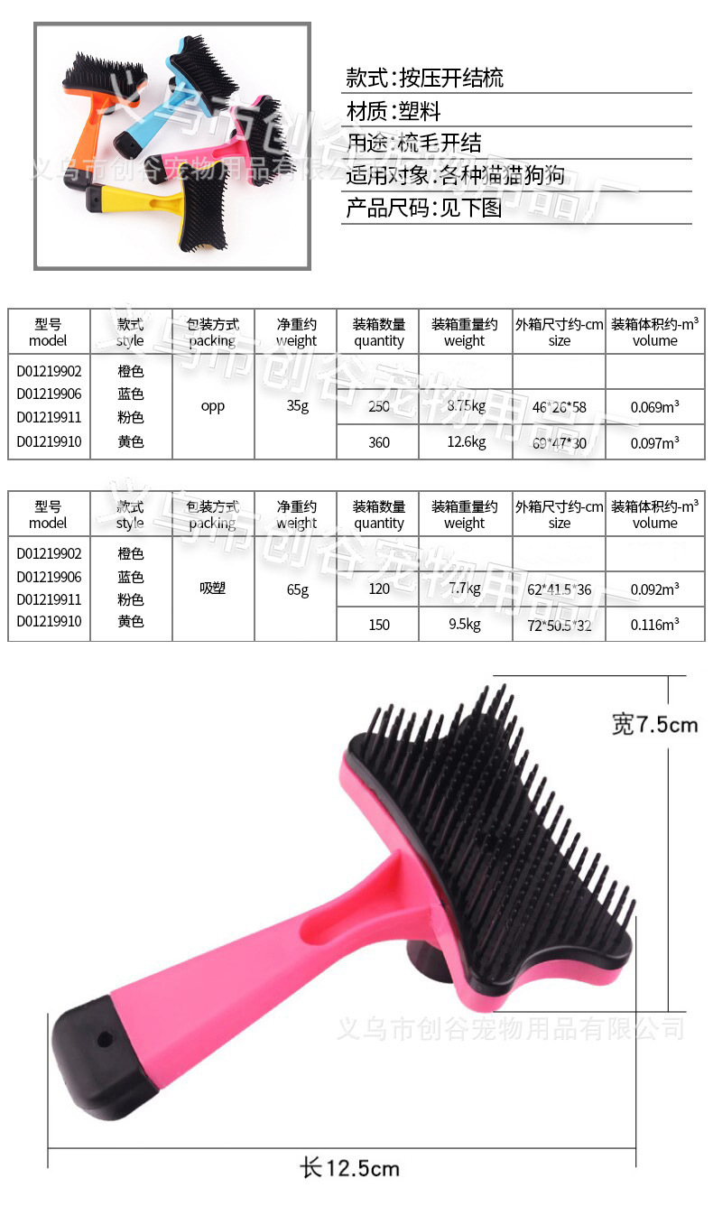 개 빗 애완 동물 프레스 오픈 매듭 빗 고양이 제모 마사지 미용 빗 애완 동물 매일 필수품스토어 가기