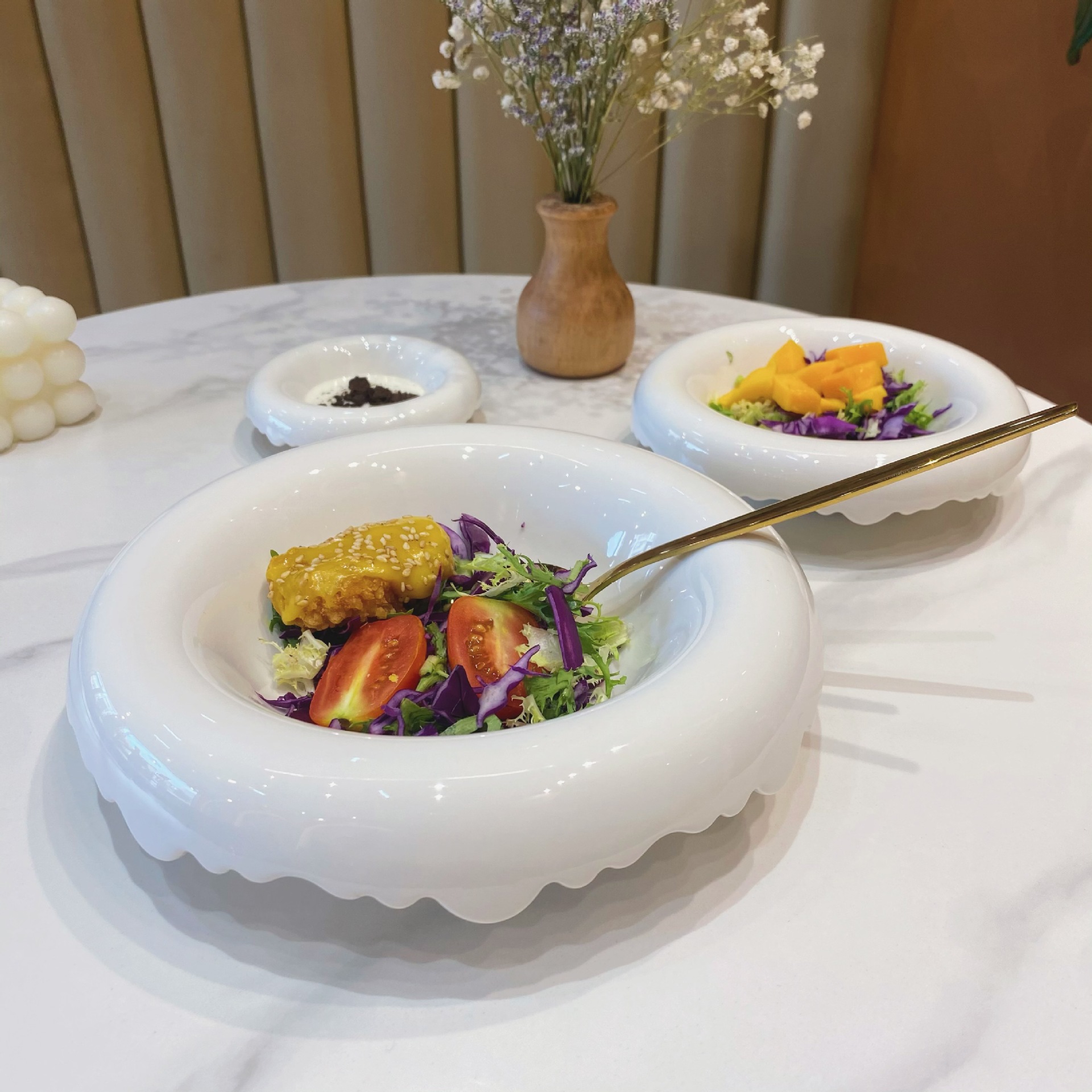 통통한 턴 업 깊은 샐러드 접시 서양 수프 접시 디저트 그릇과 한국 인 블로거스토어 가기