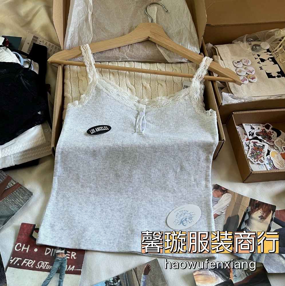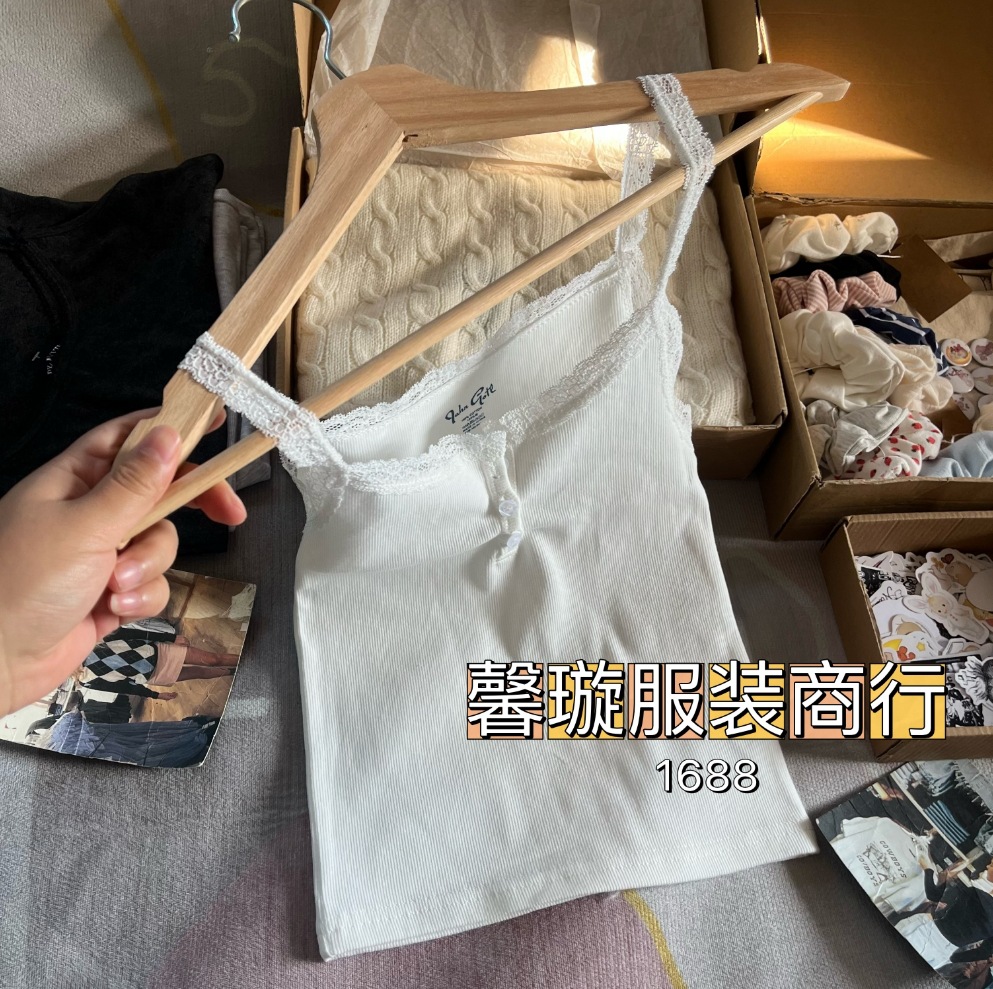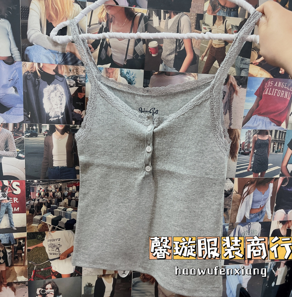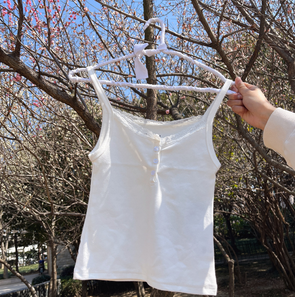 BM 스타일 화이트 버튼 레이스 조끼 작은 슬링 여성 여름 ins 순수 컬렉션