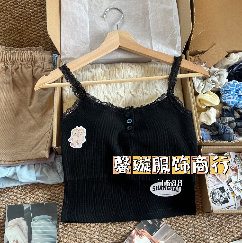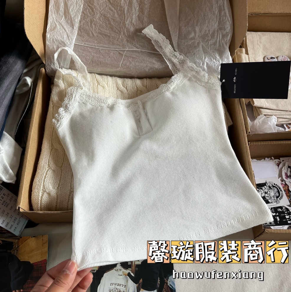 BM 스타일 화이트 버튼 레이스 조끼 작은 슬링 여성 여름 ins 순수 컬렉션스토어 가기