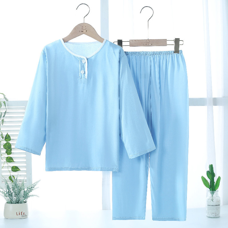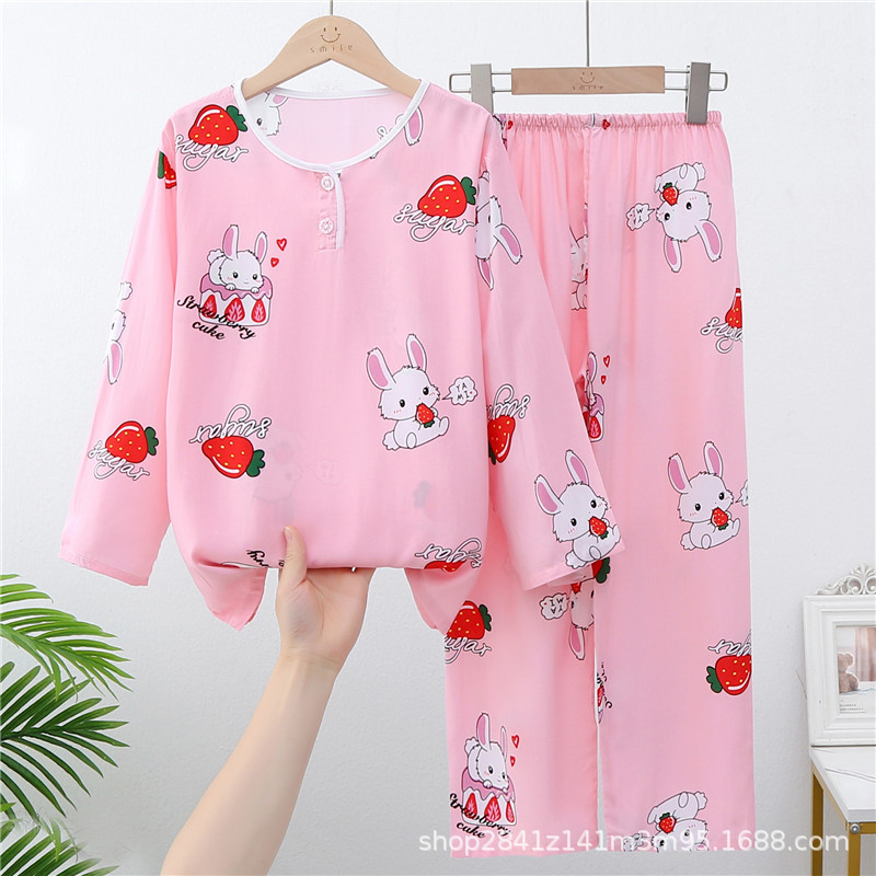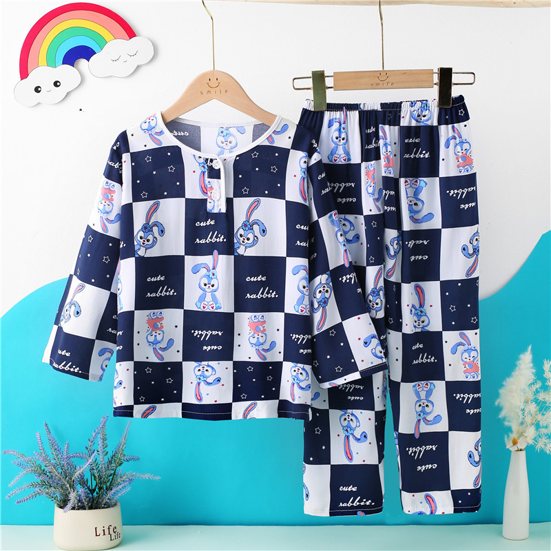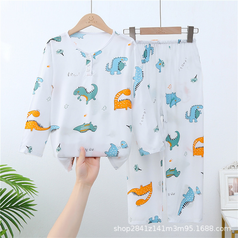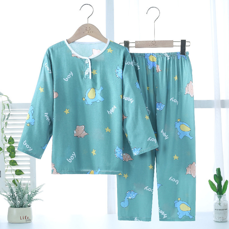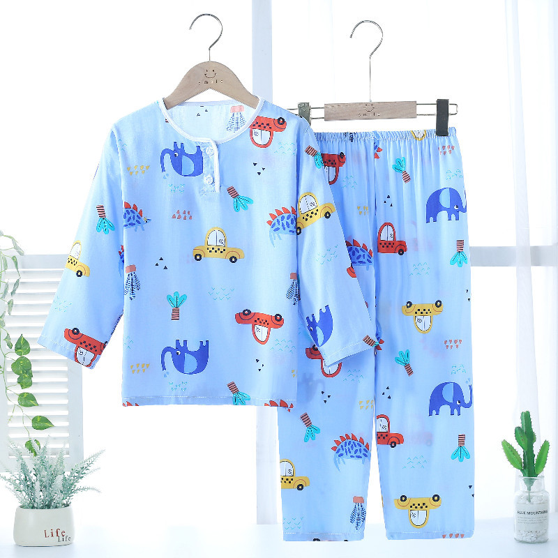 어린이 면 실크 잠옷 여름 얇은 긴 소매 소년과 소녀 아기 에어컨 가정 옷 소녀 면 실크 세트 도매스토어 가기