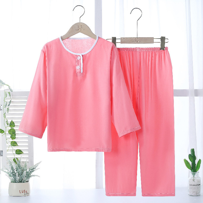 어린이 면 실크 잠옷 여름 얇은 긴 소매 소년과 소녀 아기 에어컨 가정 옷 소녀 면 실크 세트 도매