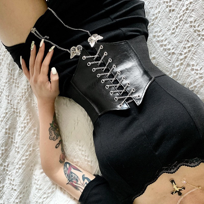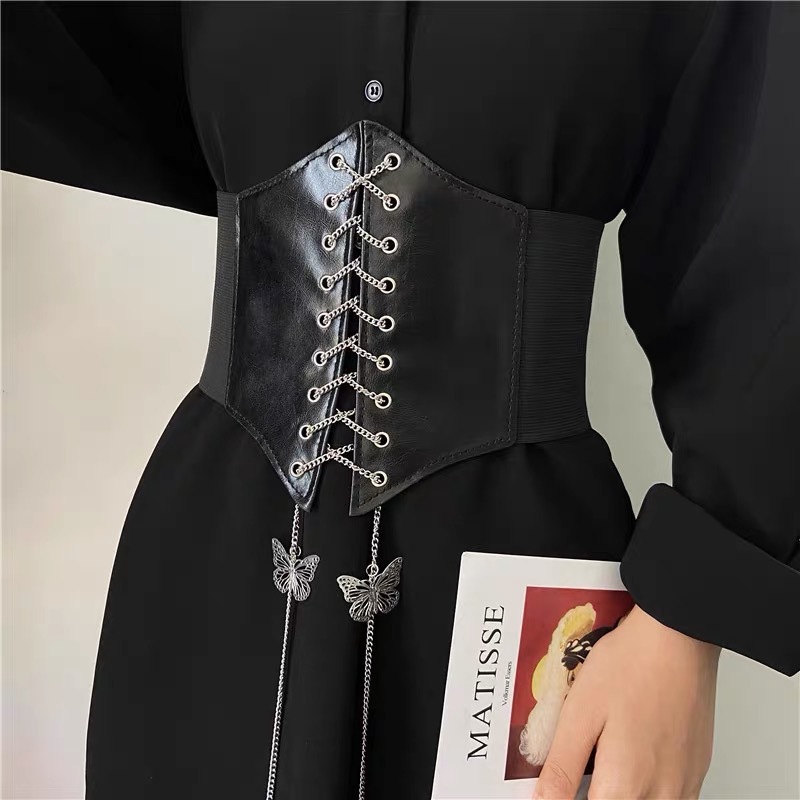 유럽과 미국 새로운 크로스 국경 탄성 와이드 허리 씰 착용 체인 활 치마 허리 커버 화이트 벨트 여성의 재고 도매스토어 가기