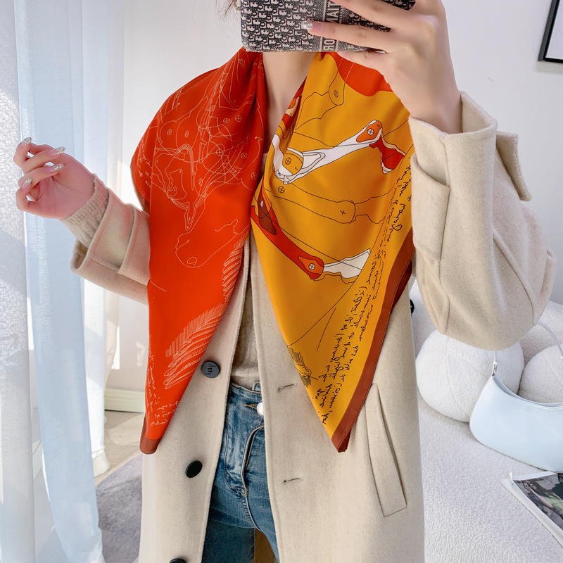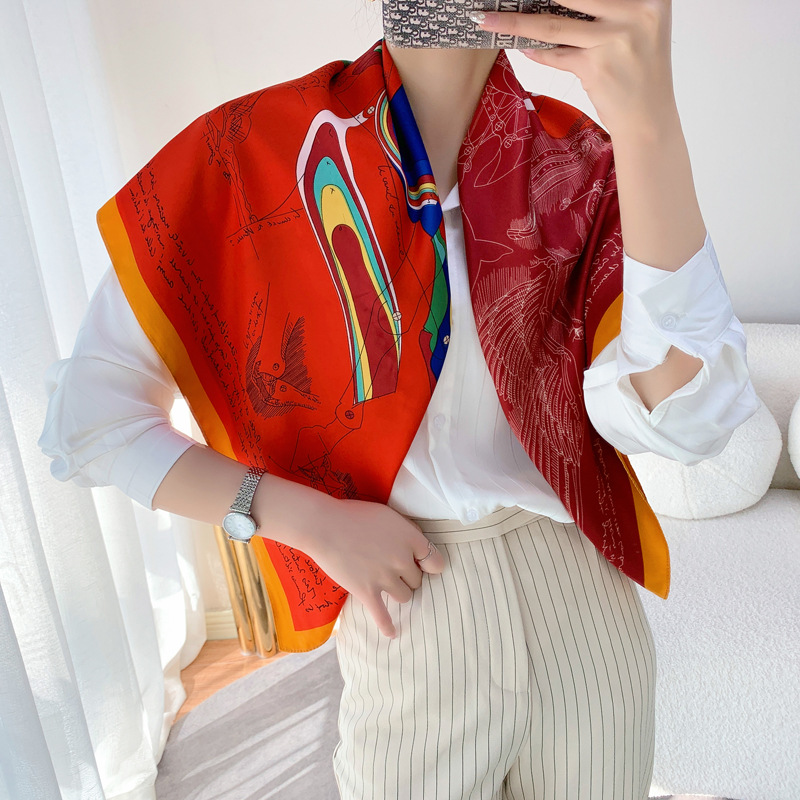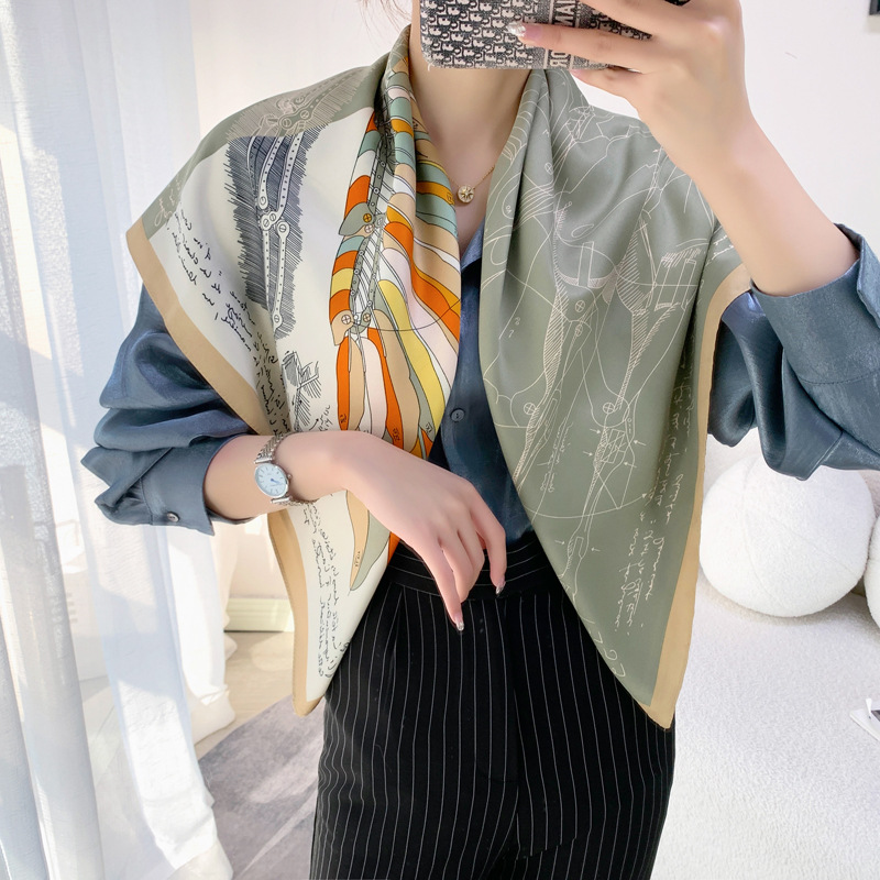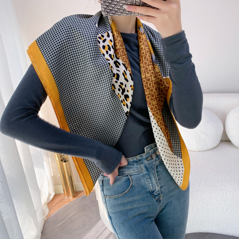 22 새로운 90 모조 실크 스퀘어 스카프 유럽과 미국의 트렌드 스타일 조커 기질 스카프 여성 스카프 목도리 스카프 도매