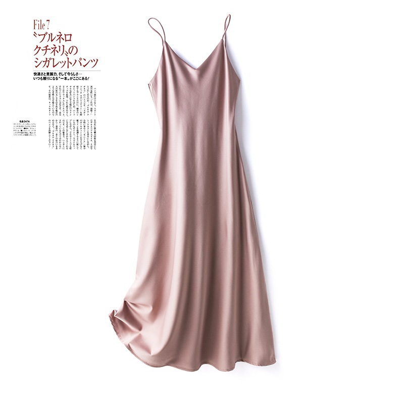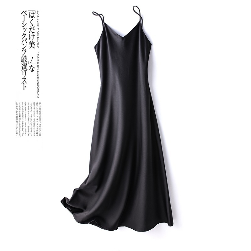 2024 봄과 여름 새로운 프랑스 아세테이트 새틴 섹시한 서스펜더 드레스 여성 중간 길이 솔리드 컬러 바닥 스커트