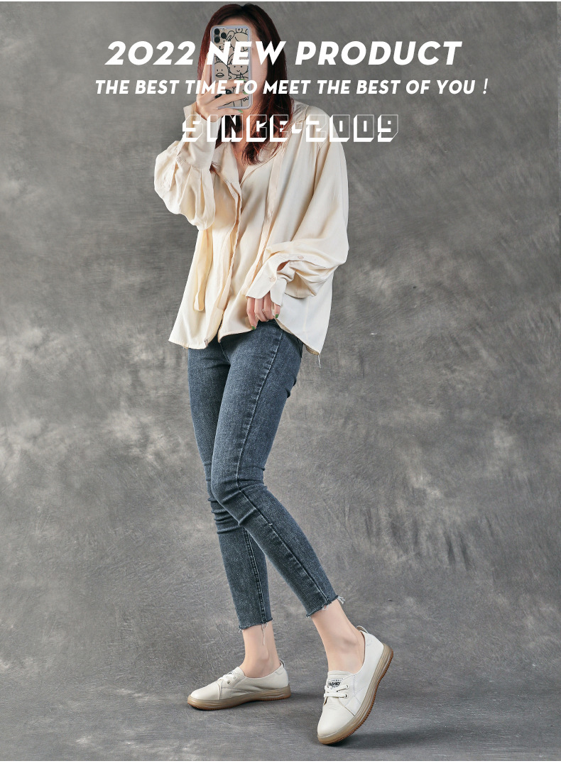 1018-12 부드러운 밑바닥 부드러운 표면 평면 미끄럼 방지 임산부 여성용 슬립 온 플랫 화이트 화이트 신발스토어 가기