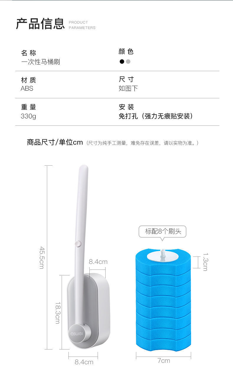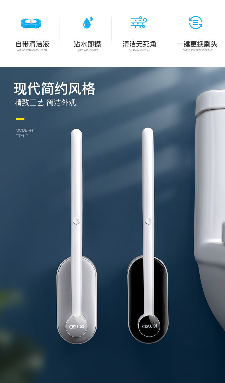 • 클래식 블랙 [벽 변기 브러시 + 바다 풍미 브러시 헤드 8]