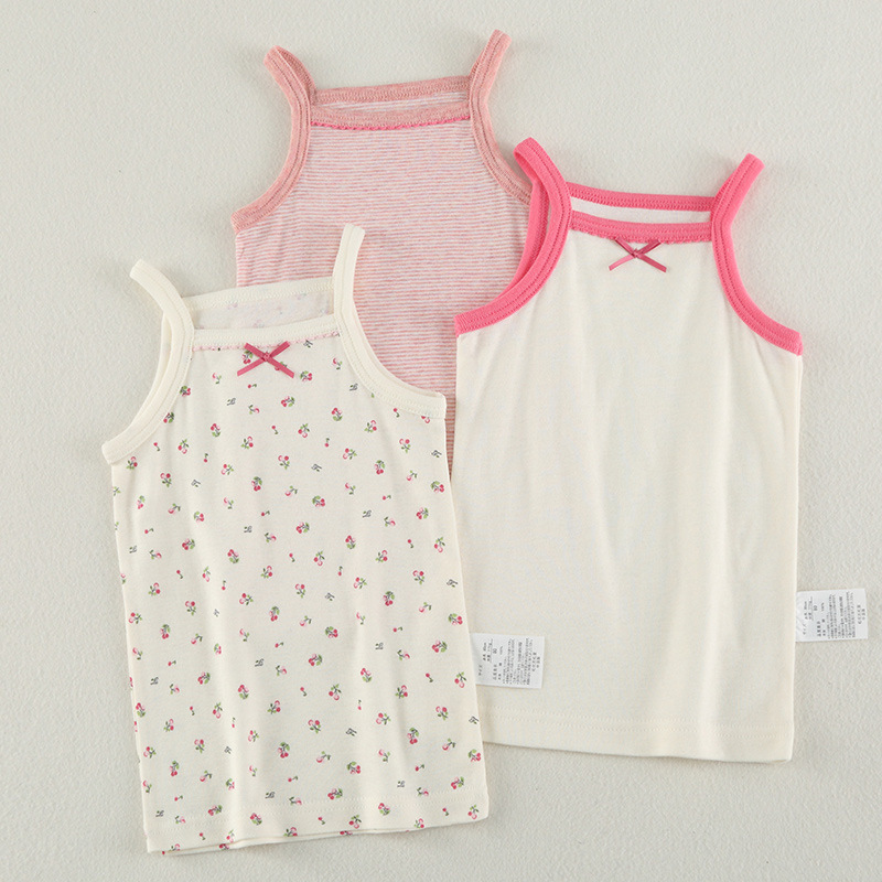 1 팩 3 개 여름 어린이 기본 속옷 슬링 순면 클래스 A 없음 형광 소녀 아기 조끼 아기 잠옷