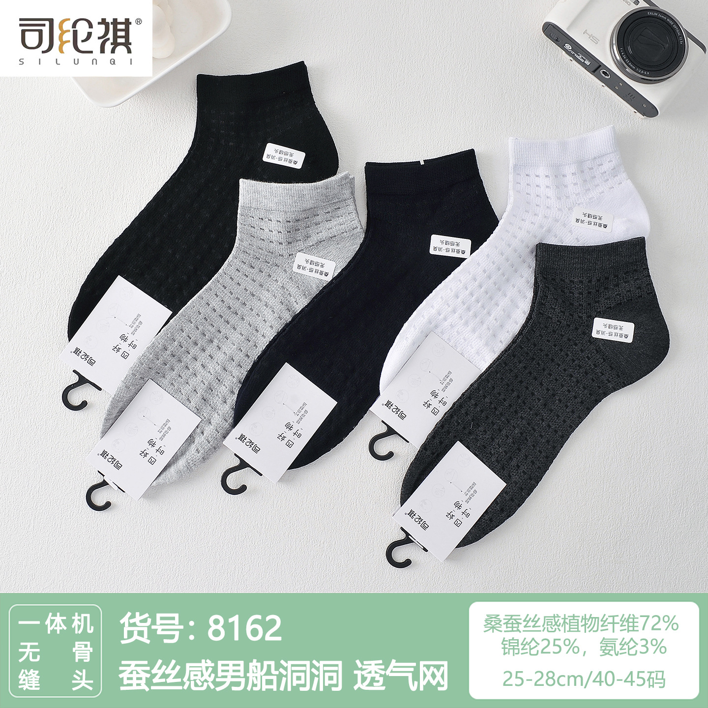【名称】桑蚕丝感男士网眼短袜