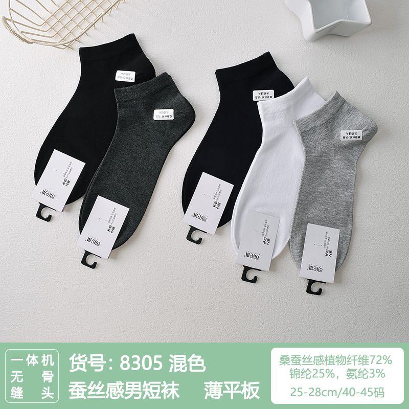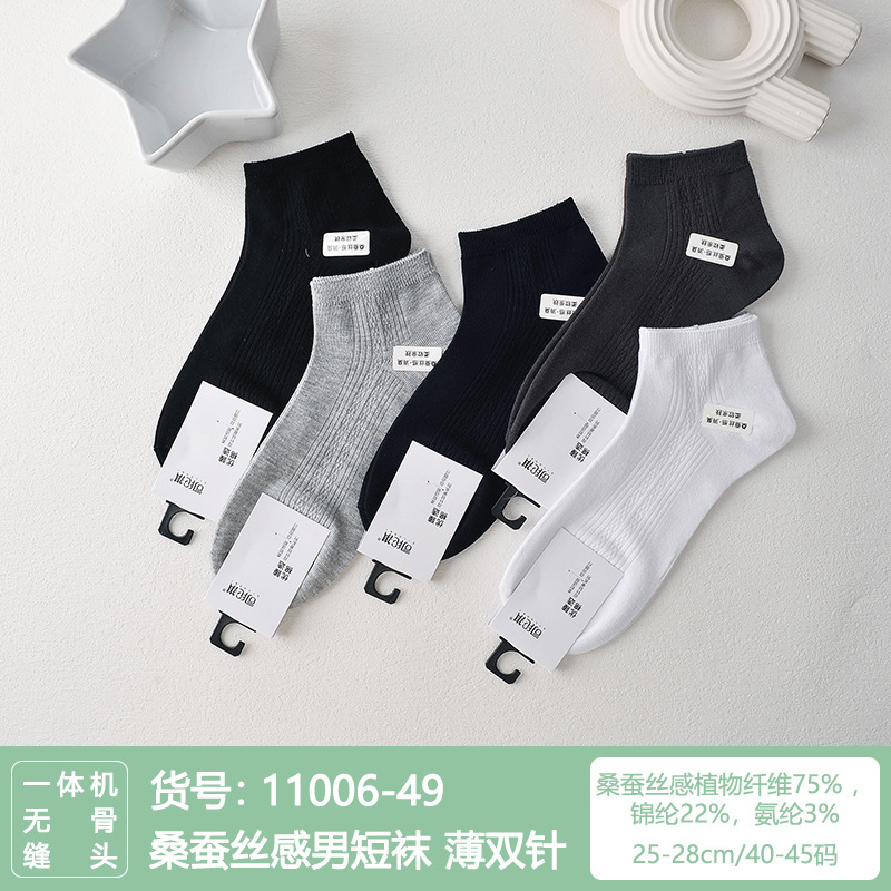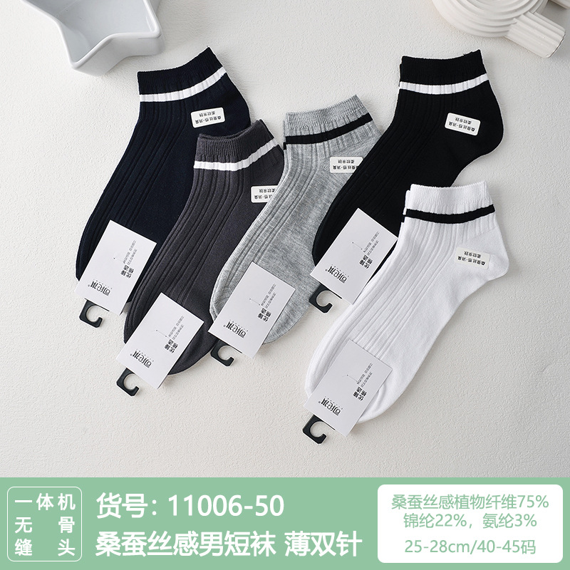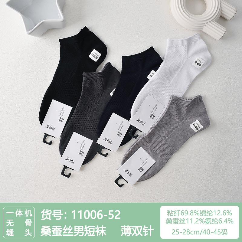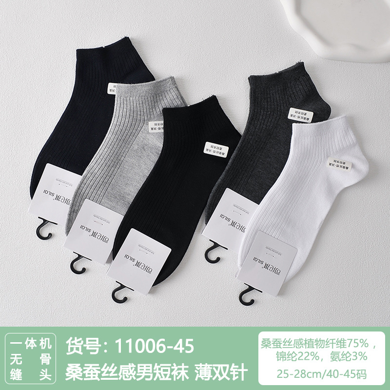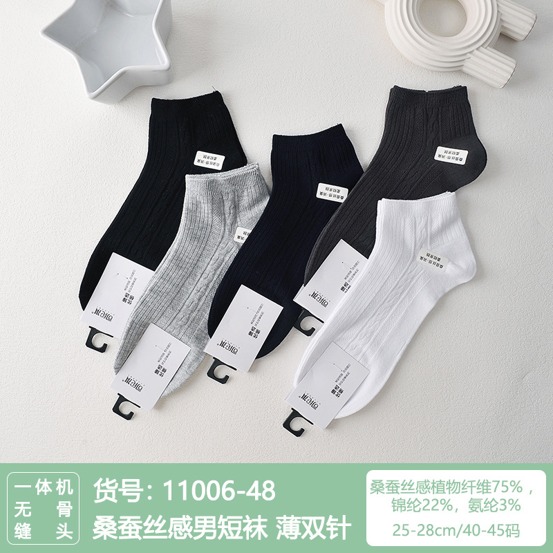 Si Lunqi 815505 뽕나무 실크 센스 남성 양말 여름 초박형 통기성 메쉬 손으로 꿰매는 실크 질감 보트 양말스토어 가기
