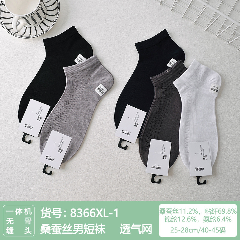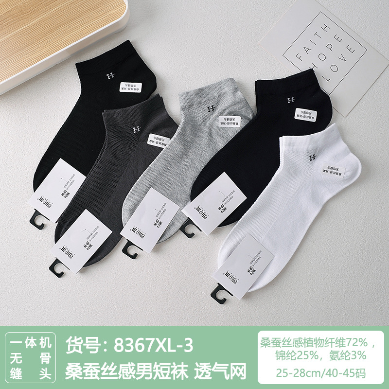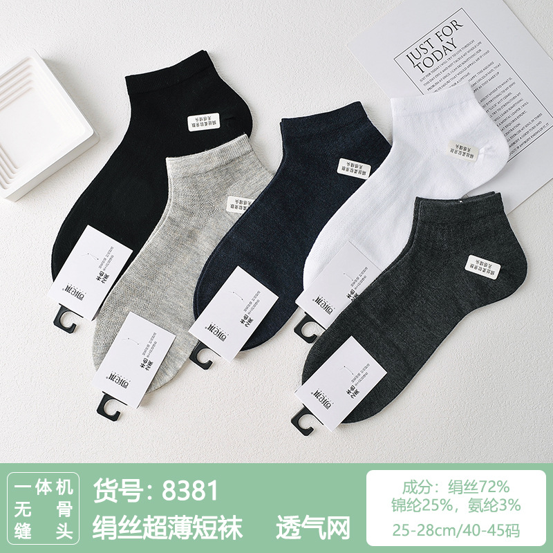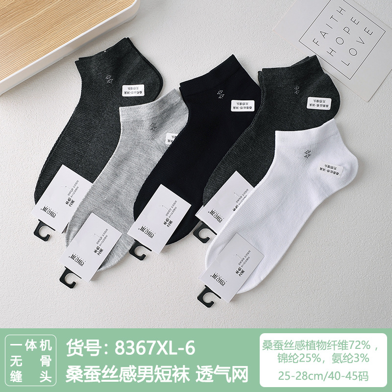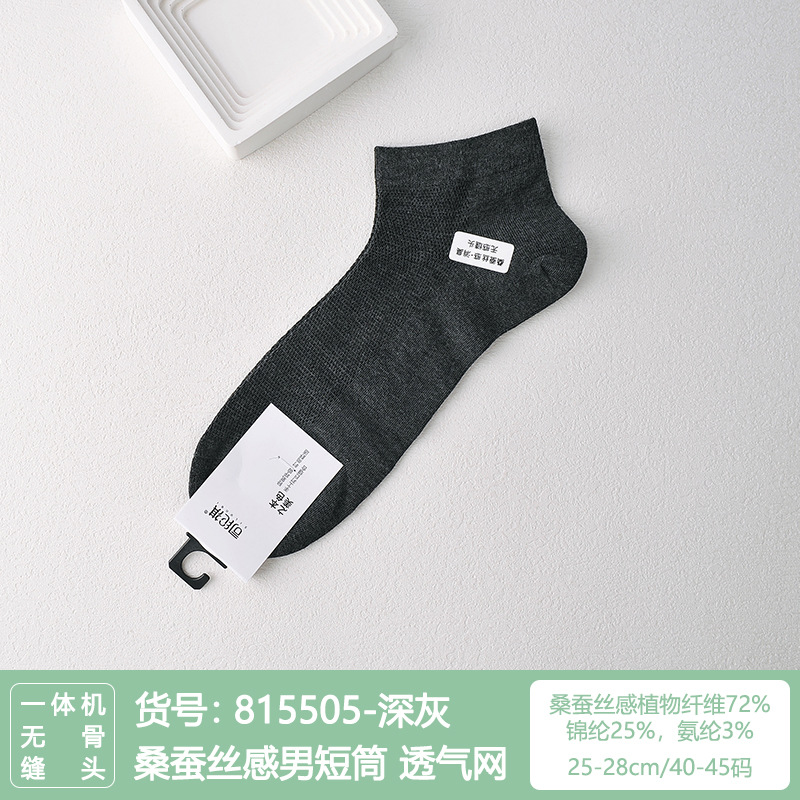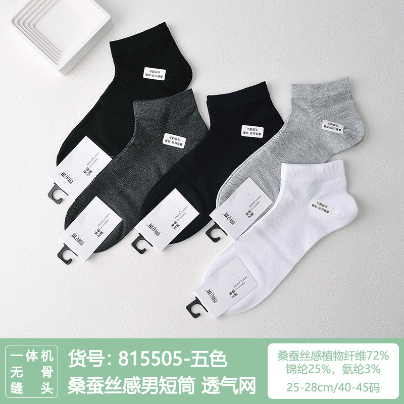 Si Lunqi 815505 뽕나무 실크 센스 남성 양말 여름 초박형 통기성 메쉬 손으로 꿰매는 실크 질감 보트 양말