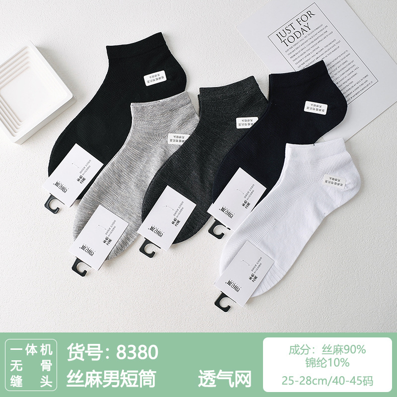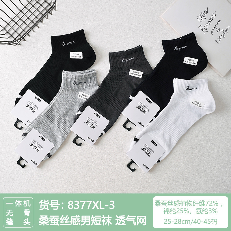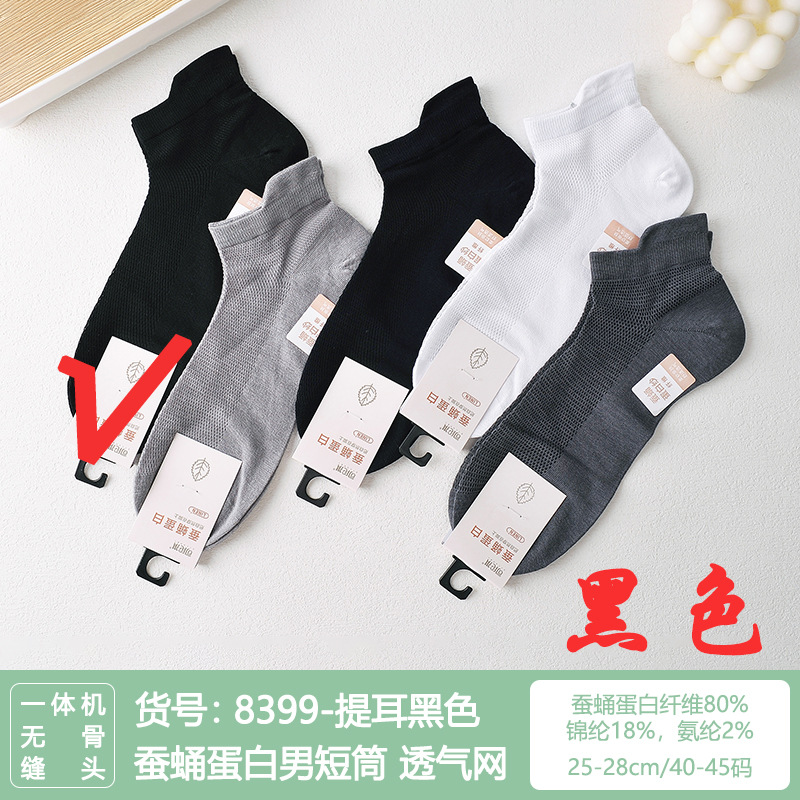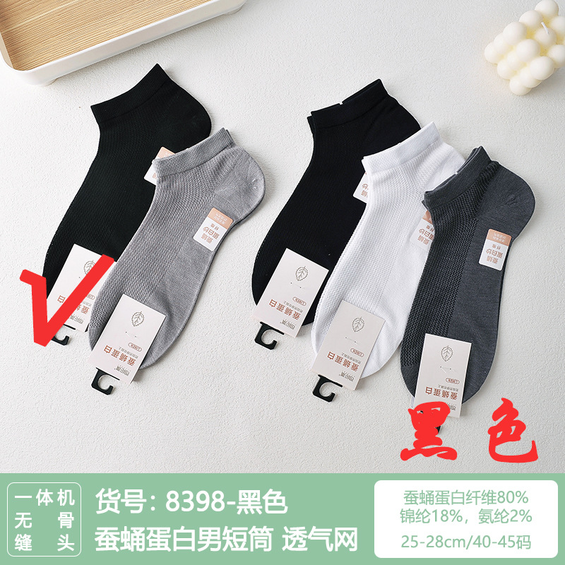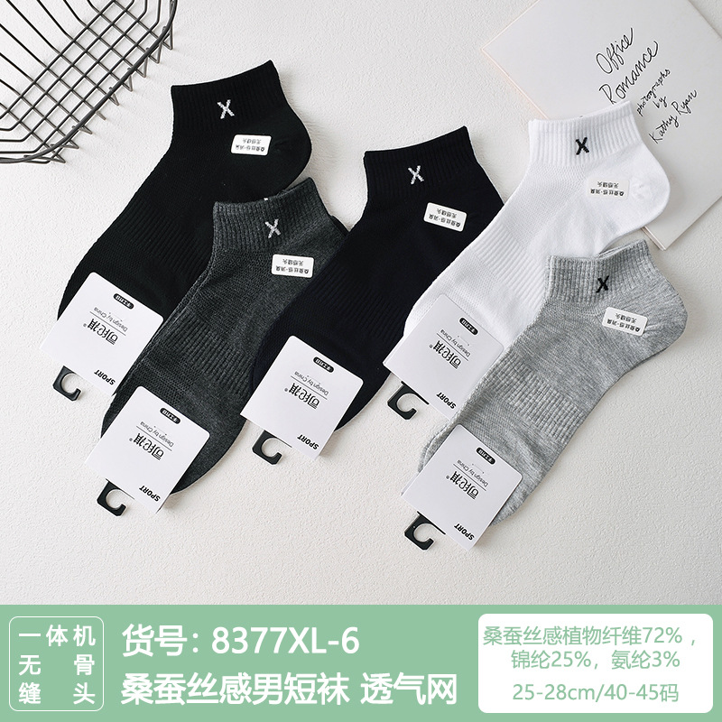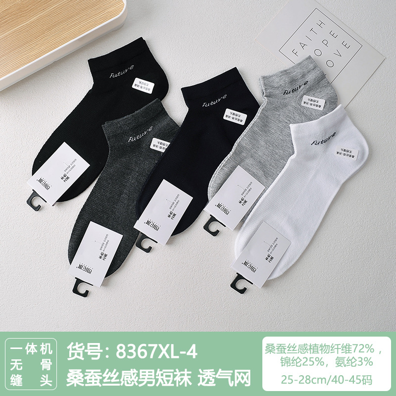 Si Lunqi 815505 뽕나무 실크 센스 남성 양말 여름 초박형 통기성 메쉬 손으로 꿰매는 실크 질감 보트 양말