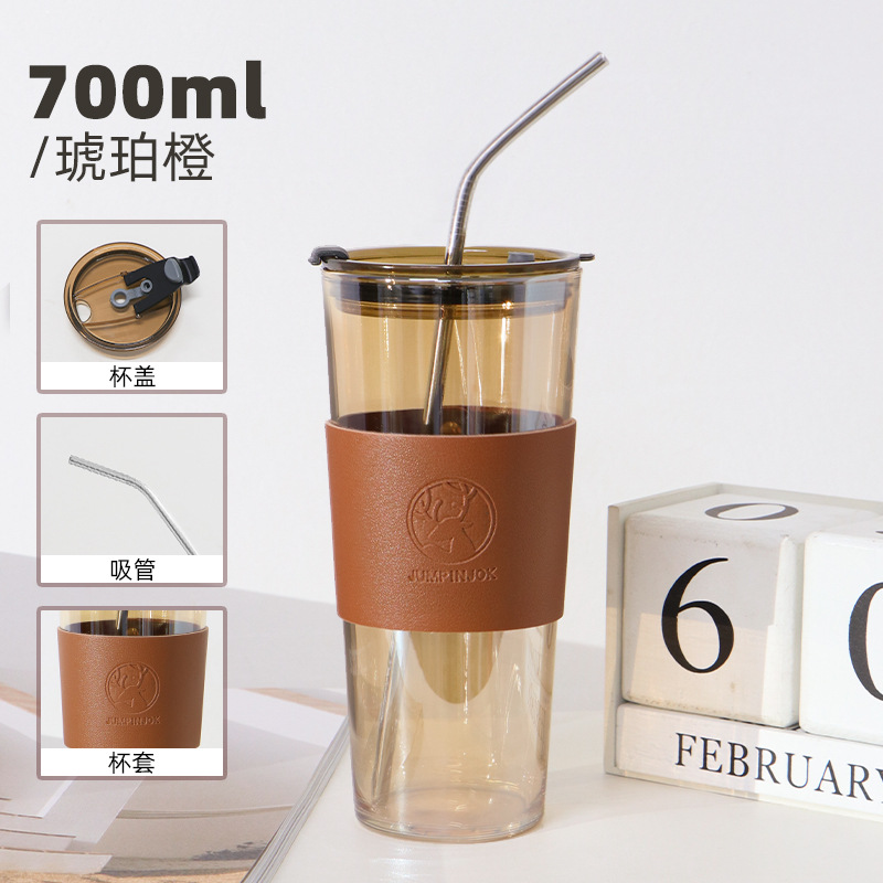 • 700ml [고붕규산유리] 호박색 빨대컵