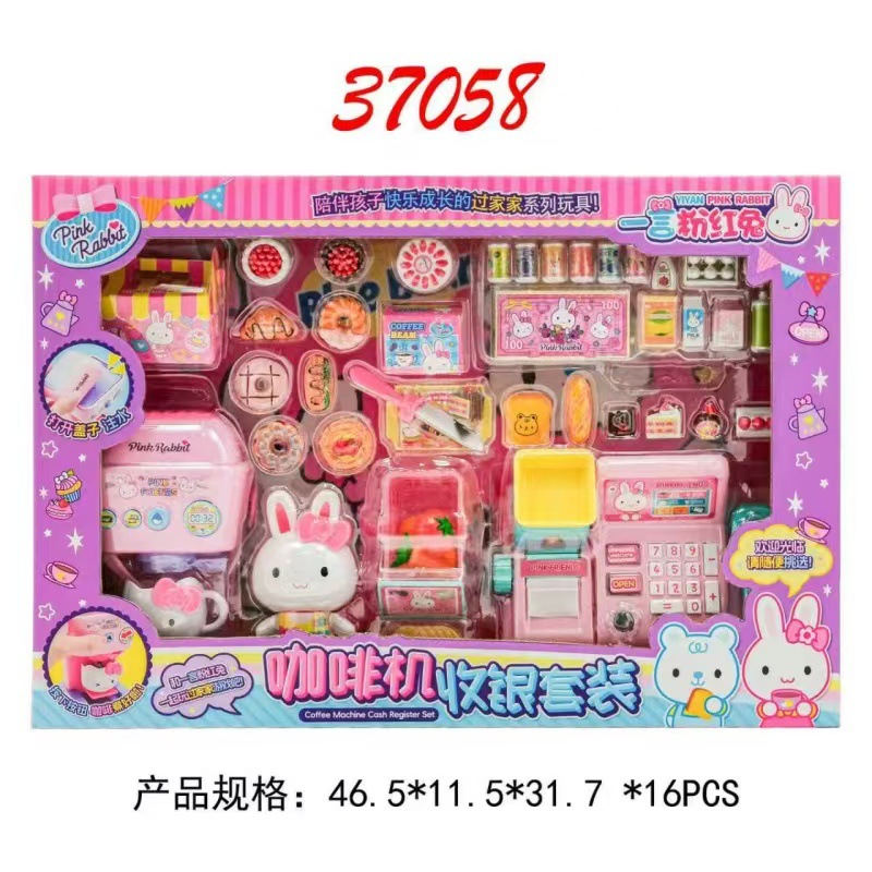 한 단어 핑크 토끼 놀이 집 장난감 시리즈 공주 냉장고 세트 주방 세탁기 금전 등록 소녀 선물스토어 가기