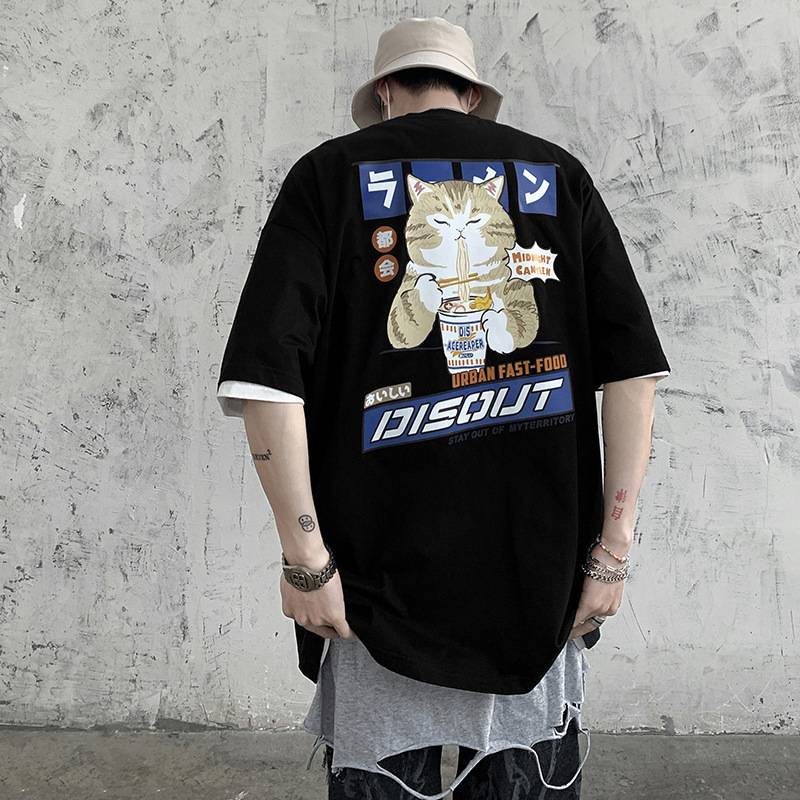 홍콩 스타일 티셔츠 남성용 반팔 루즈한 여름 트렌디 브랜드 커플 반팔 탑 Instagram 스타일 트렌디 심플 올매치 반팔 탑스토어 가기
