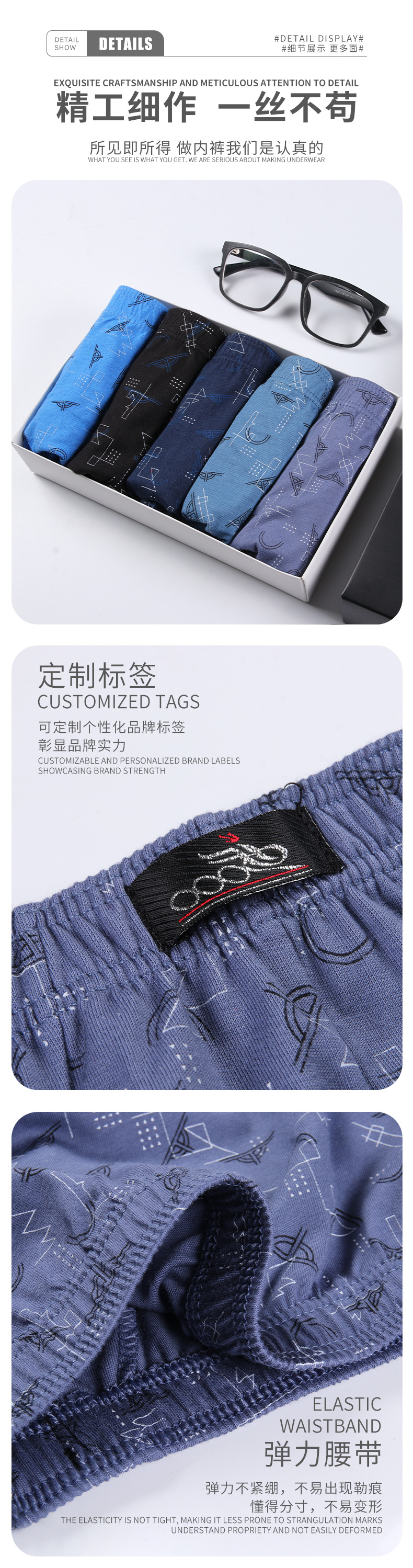 제조업체 도매 프린트 남성 속옷 삼각팬티 통기성 중간 허리 면 캐주얼 스포츠 남성 속옷 통기성 편안함스토어 가기