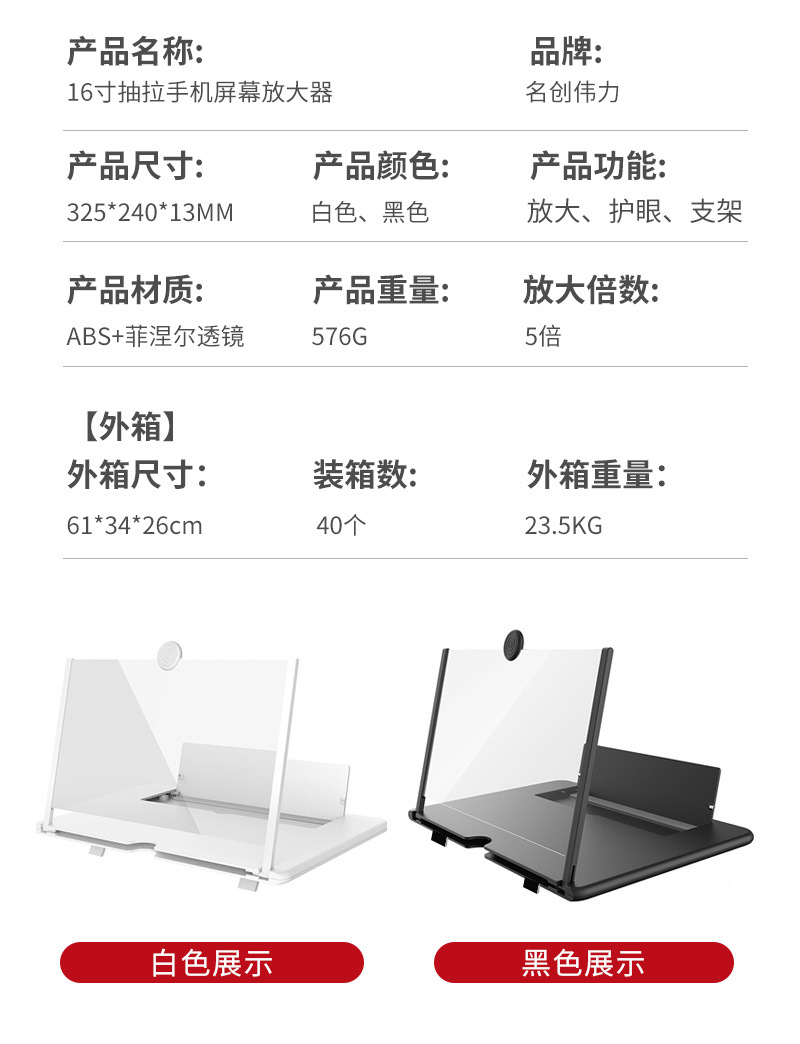 휴대 전화 화면 증폭기 18inch 풀 아웃 휴대 전화 증폭기 슈퍼 신선한 스타일 화면 증폭기 눈 보호 보물