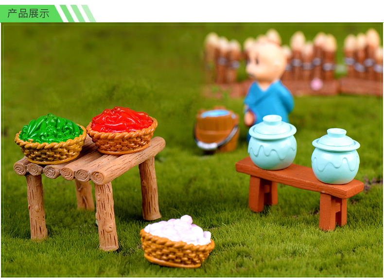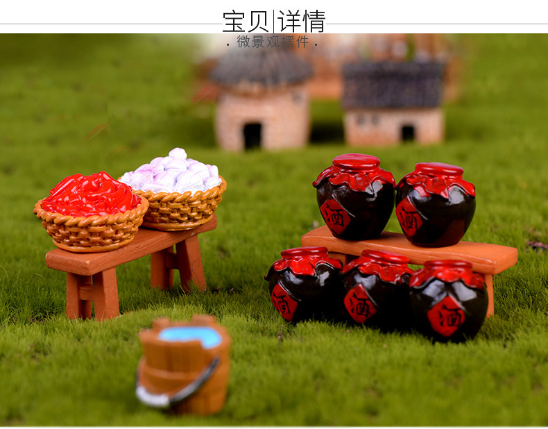 마이크로 풍경 와인 그릇 항아리 건초 더미 나무 양동이 칠리 마늘 대나무 바구니 찐 케이크 어항 장식품스토어 가기