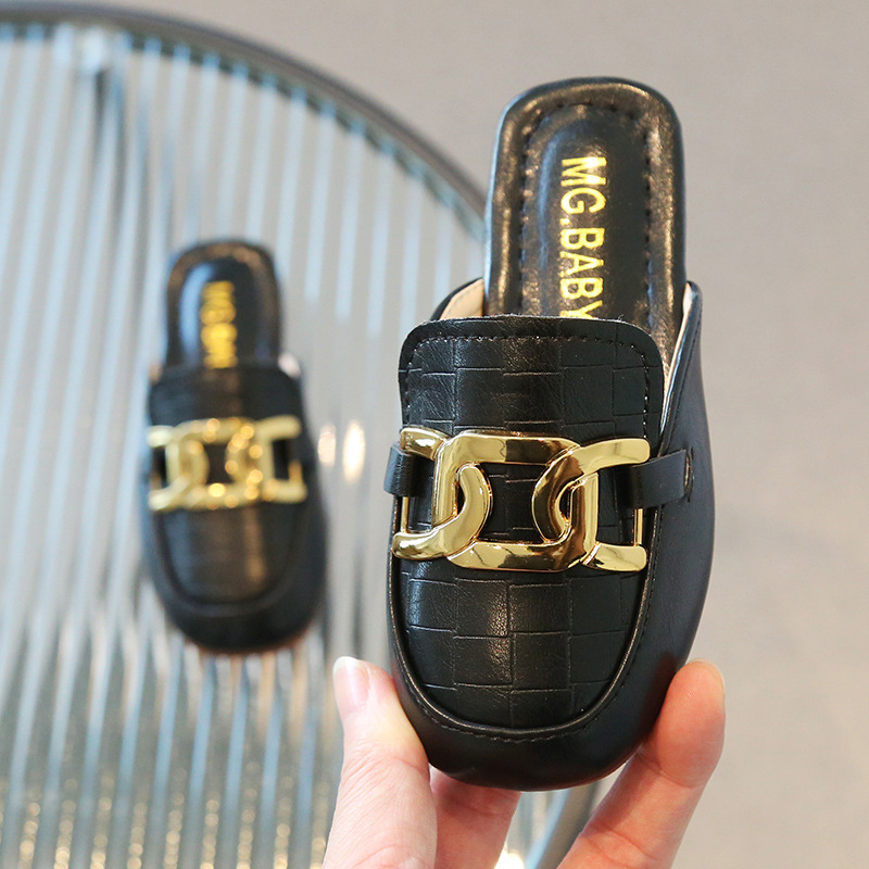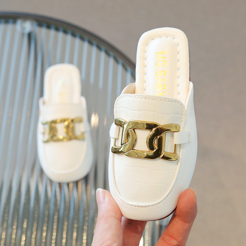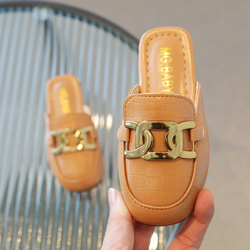 심플한 여아 가죽신 2026 가을 패션 신발 아동용 금속 버클 슬립온 신발 한국 스타일 미끄럼 방지 부드러운 밑창 슬리퍼