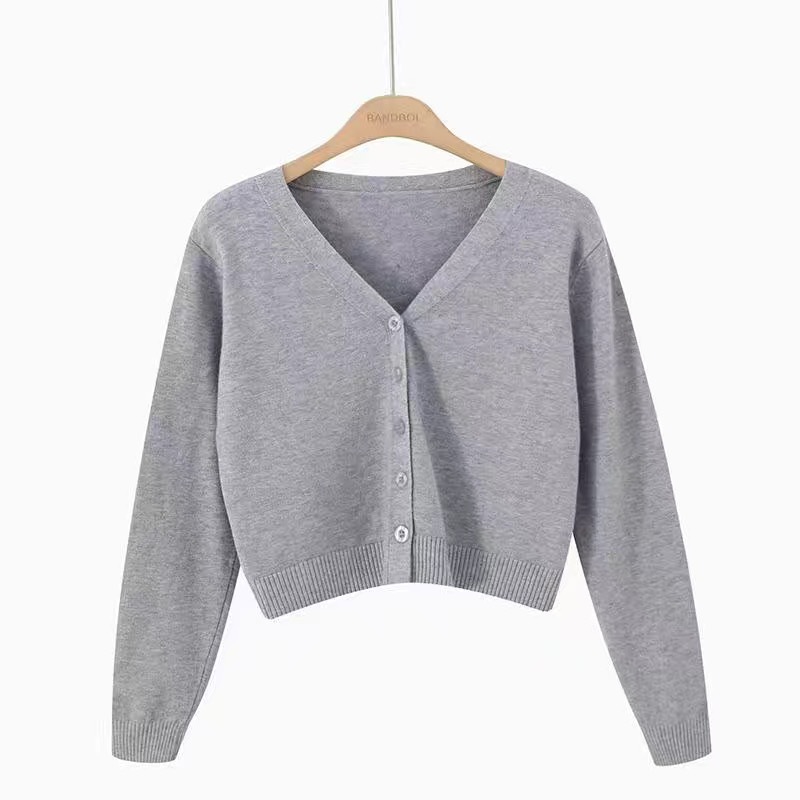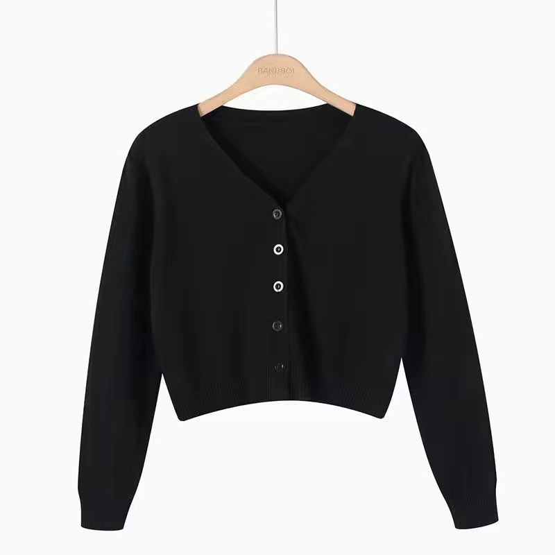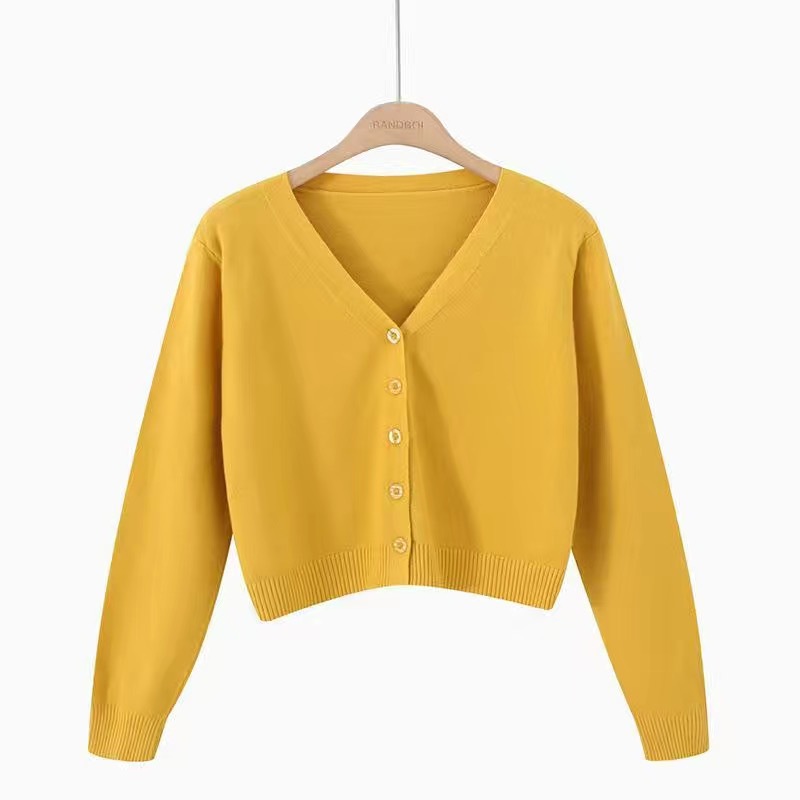 Dalong 울 스웨터 짧은 코트 긴팔 카디건 여성용 숄 V 넥 싱글 브레스트 탑 슬림 피트스토어 가기