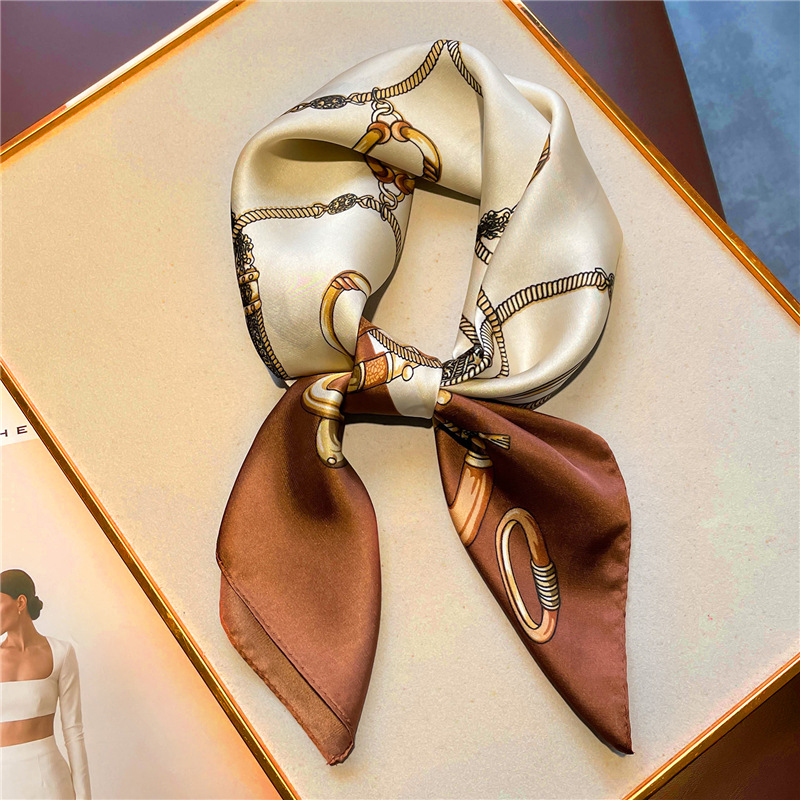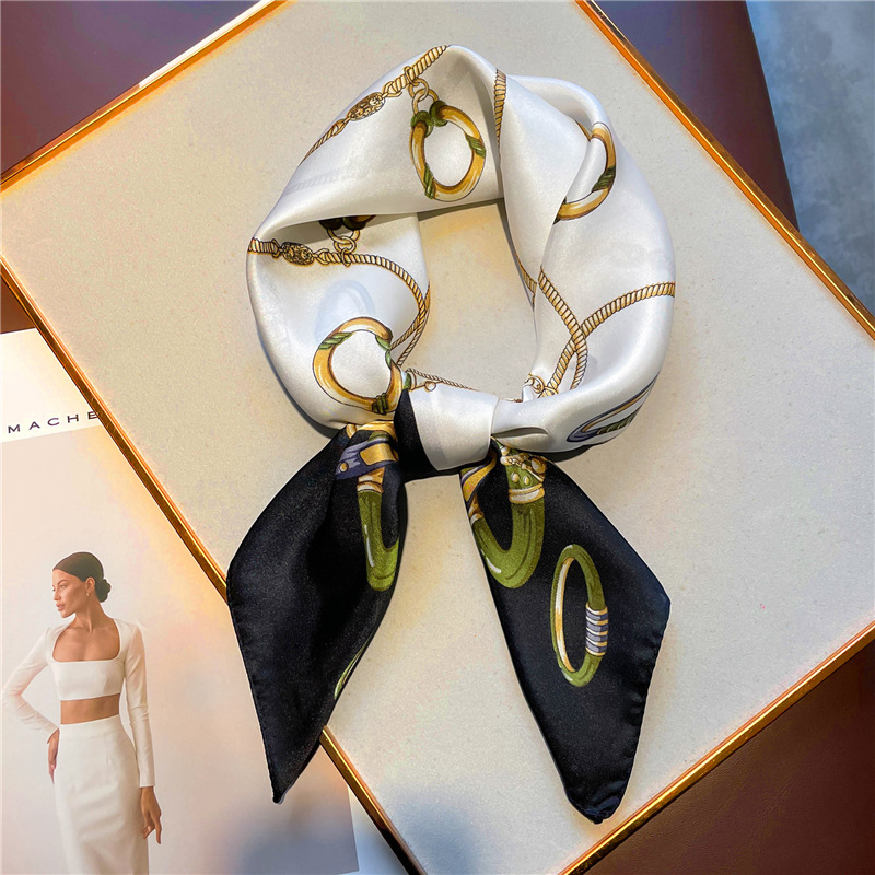 새로운 스타일 작은 실크 스카프 패션 체인 모든 매치 스퀘어 스카프 70cm 컬러 매칭 스카프 모조 실크 머리 스카프 자외선 차단제 스카프 여성
