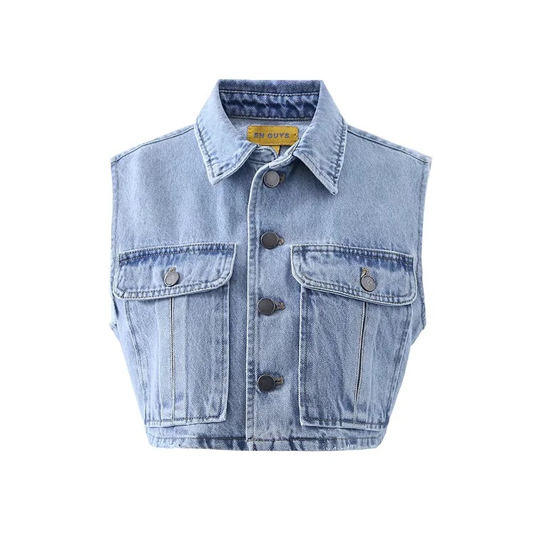 짧은 싱글 브레스트 데님 조끼 유럽과 미국 스타일의 여성 패션 여성을위한 새로운 POLO 칼라 데님 조끼