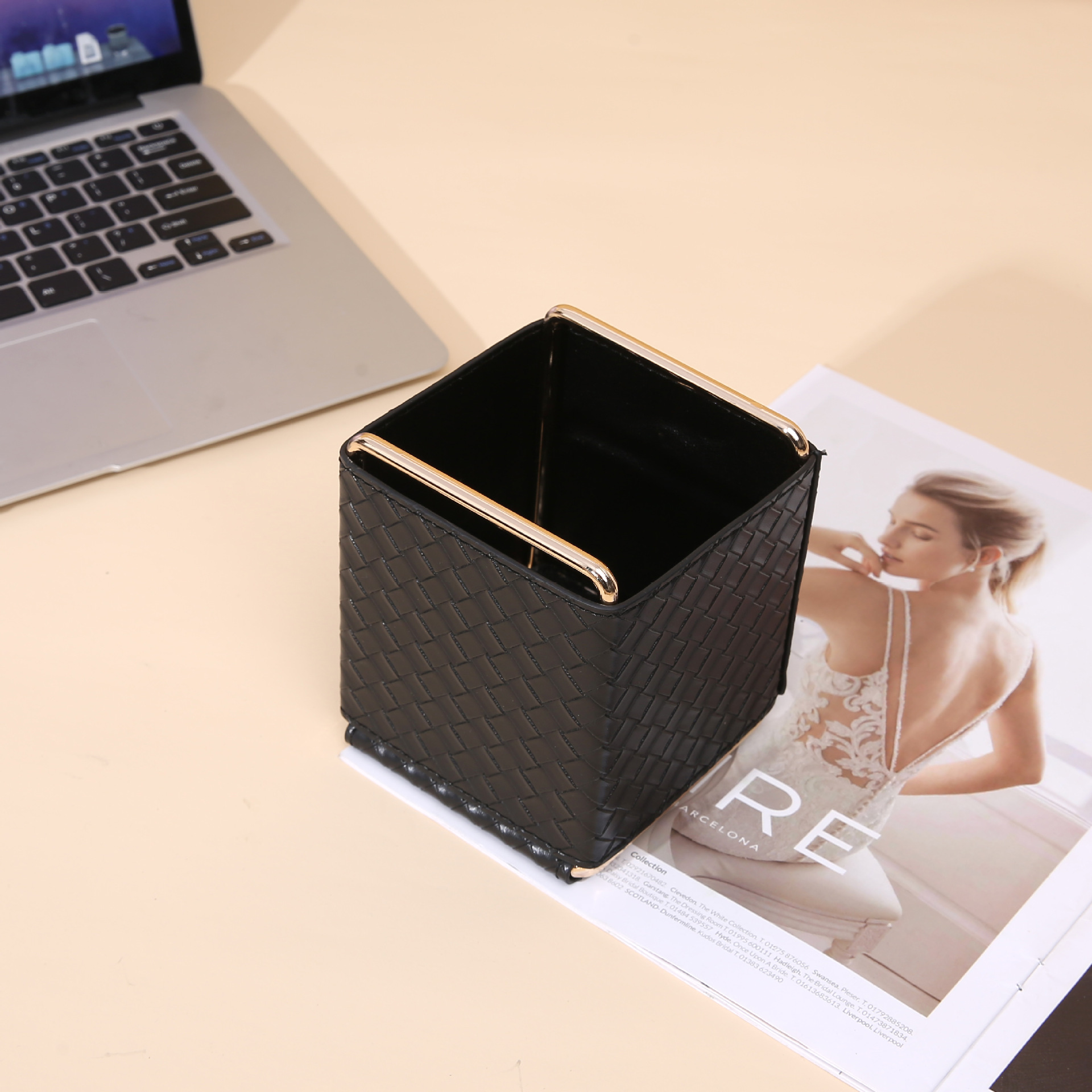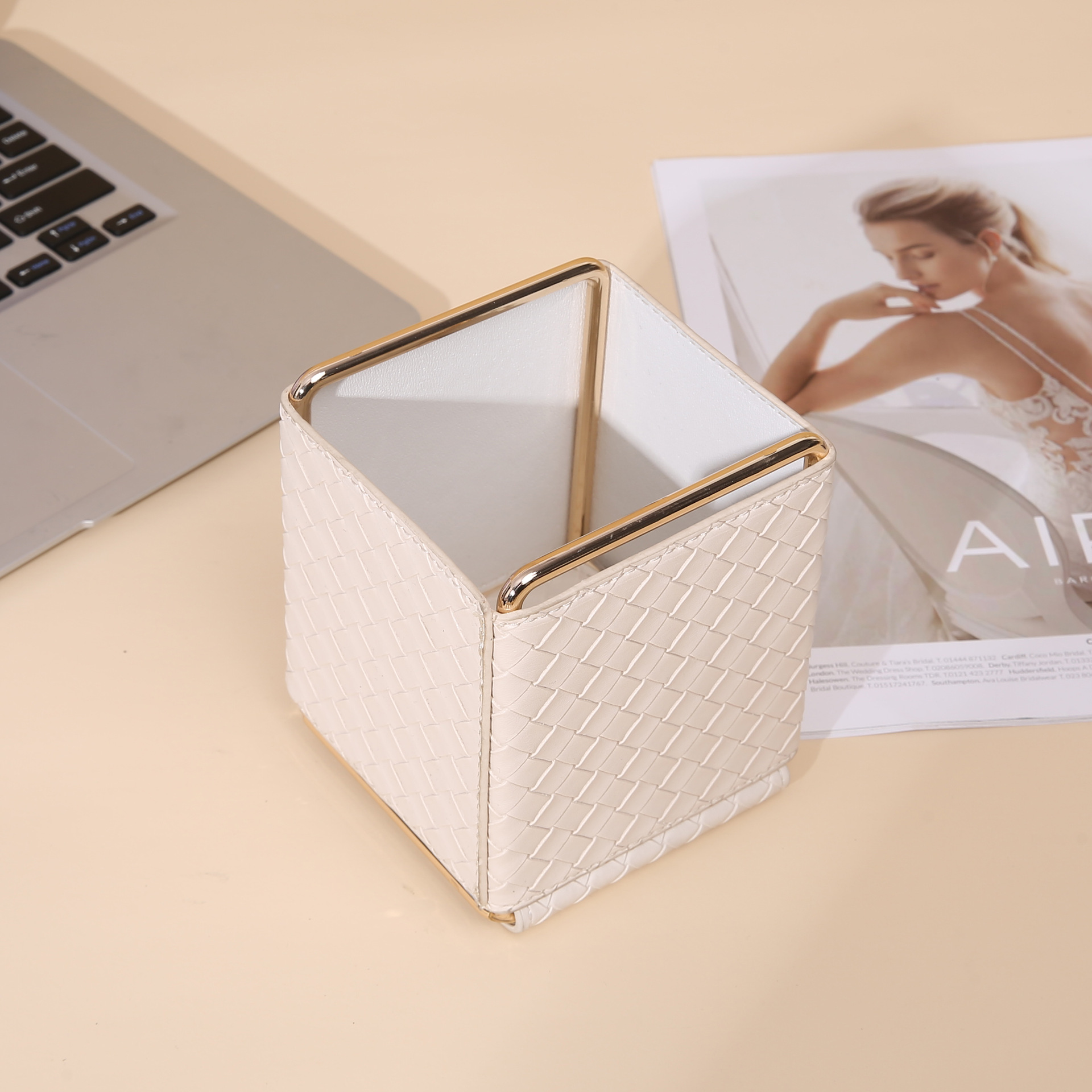 북유럽 스타일 가죽 미니멀리스트 펜 홀더 사무실 화장품 리모컨 여성용 화장대 데스크탑 수납함 모던 직조 디자인