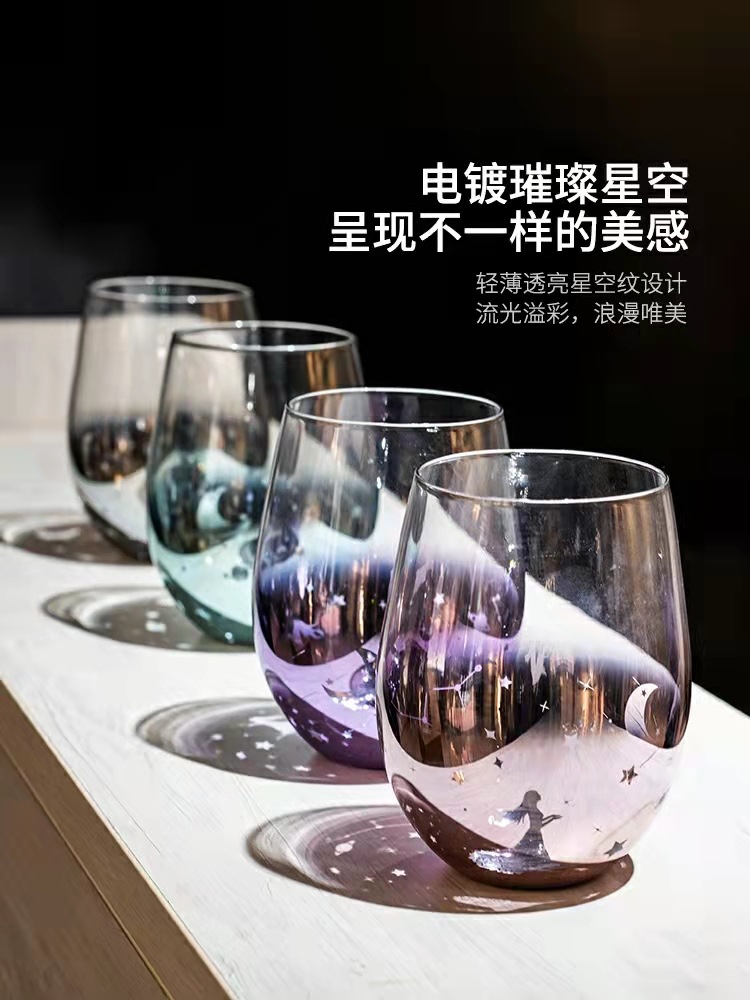별이 빛나는 하늘 유리 스타일 간단한 계란 모양의 창조적 인 가정용 와인 잔 주스 컵 귀여운 큰 배꼽 물 컵 도매스토어 가기
