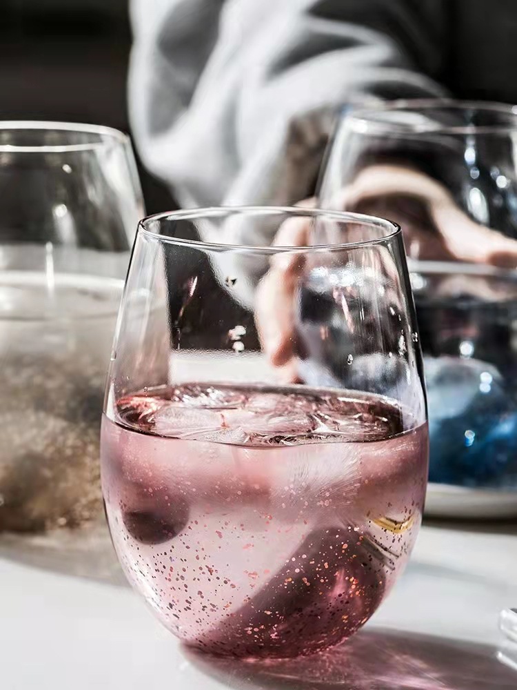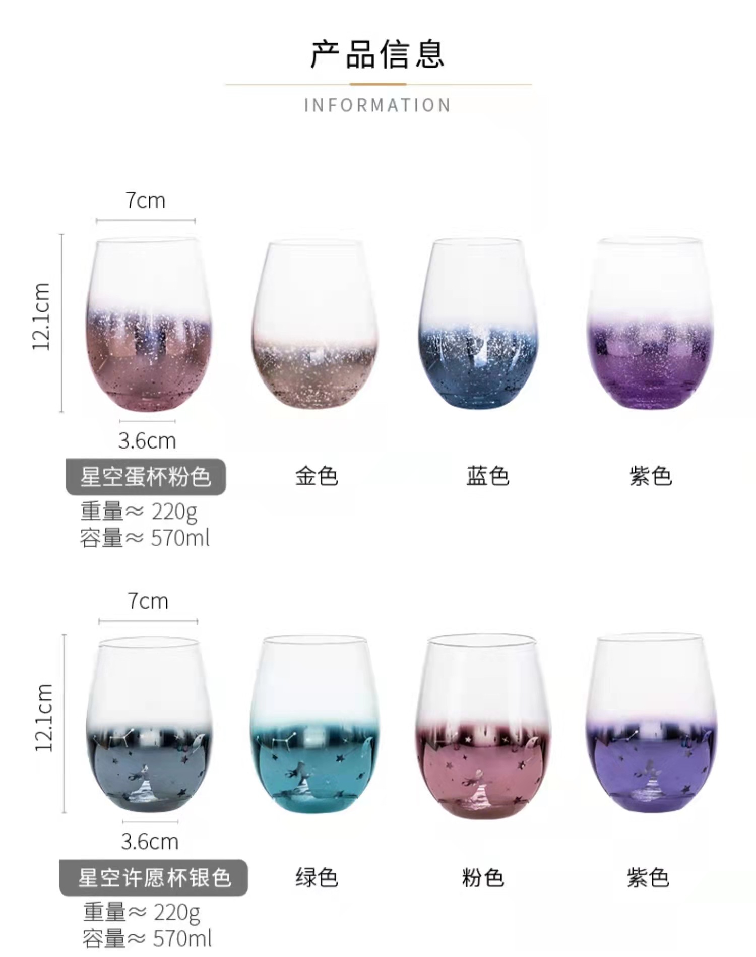 별이 빛나는 하늘 유리 스타일 간단한 계란 모양의 창조적 인 가정용 와인 잔 주스 컵 귀여운 큰 배꼽 물 컵 도매