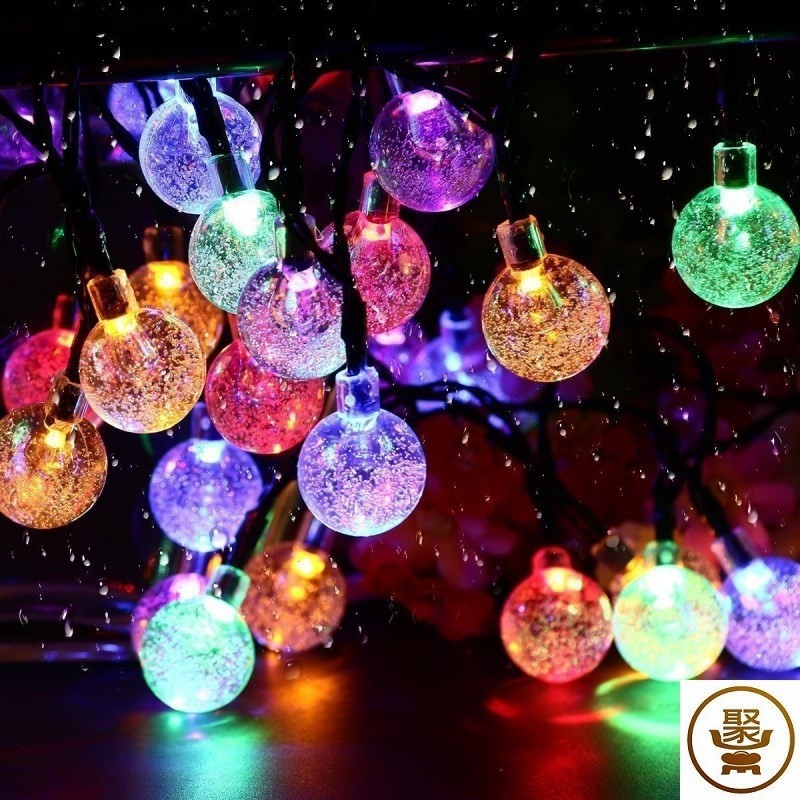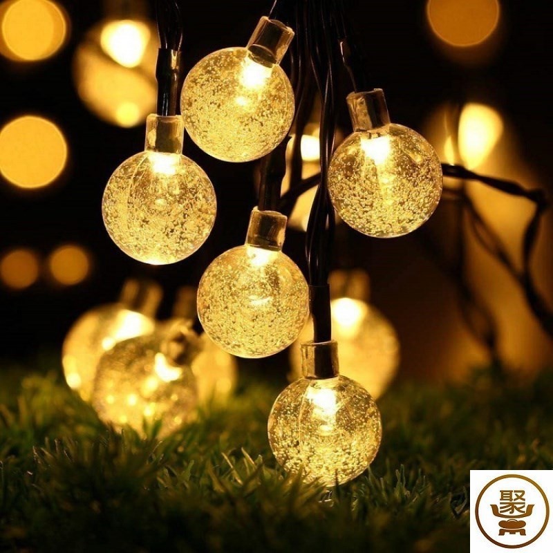 厂家直销太阳能灯串30LED气泡球彩灯圣诞节日庭院装饰灯户外防水