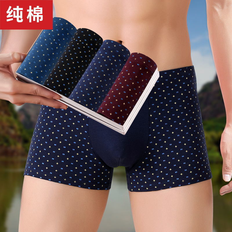 4 개 남자의 면 속옷 남자의 사각 팬티 느슨한 플러스 사이즈 남자의 바지스토어 가기