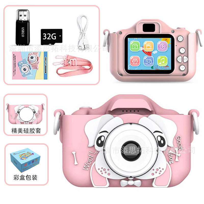 • 강아지 카메라 전면 및 후면 더블 샷 핑크 32g 카드 및 카드 리더