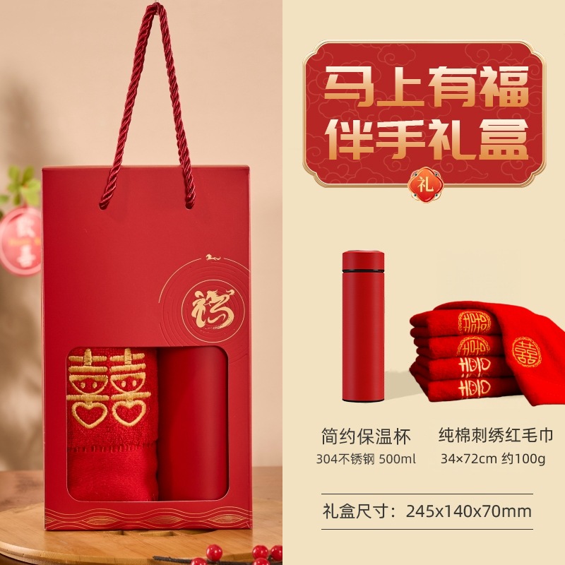 순면 레드 웨딩 타월 선물세트, 결혼식 및 생일잔치 답례품, 기념품, 순면 더블해피워드 타월 세트