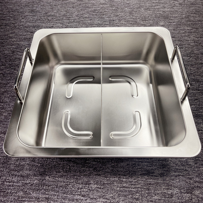 3.配套285*285mm不锈钢鸳鸯汤锅,(201#材质,焊接隔片)。