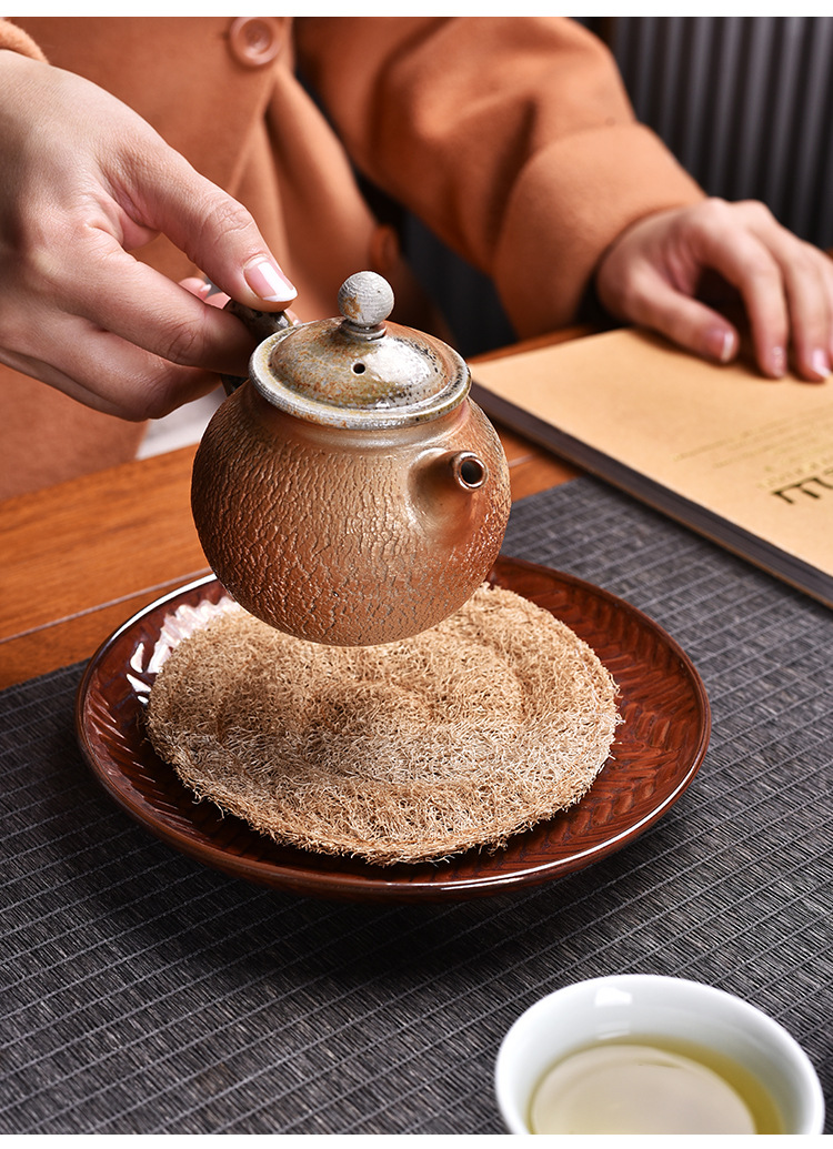 천연 수세미 일본식 수제 냄비 베어링 패드 마모 방지 및 노크 방지 다도 제로매칭 포트 패드 티포트 패드 퍼플 샌드 포트 패드스토어 가기