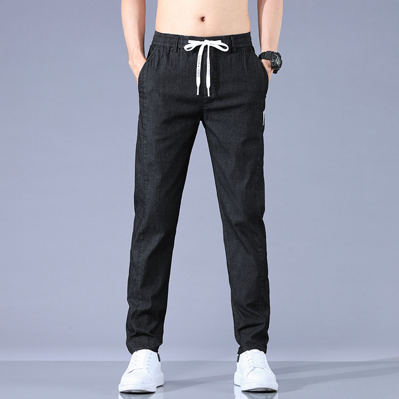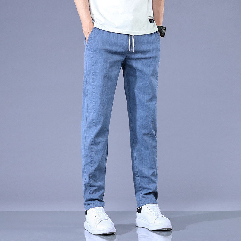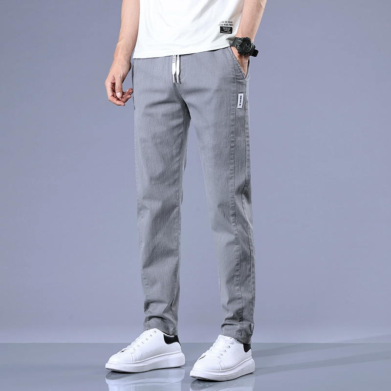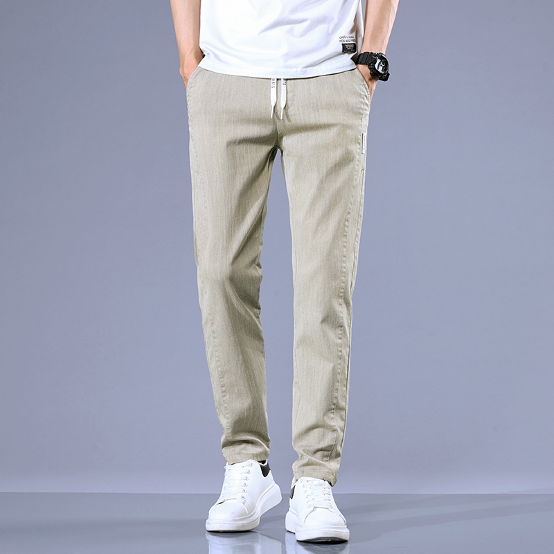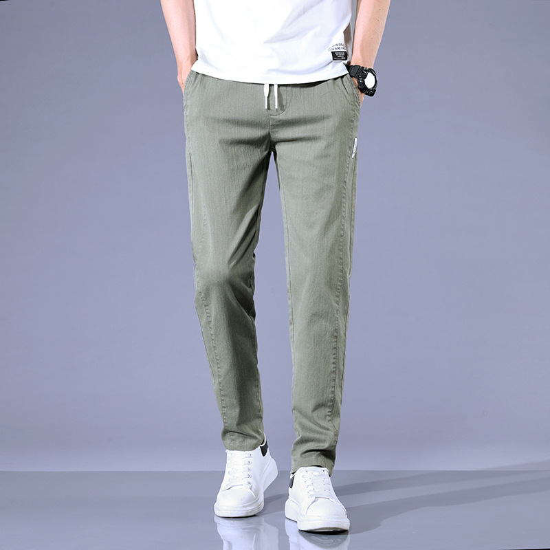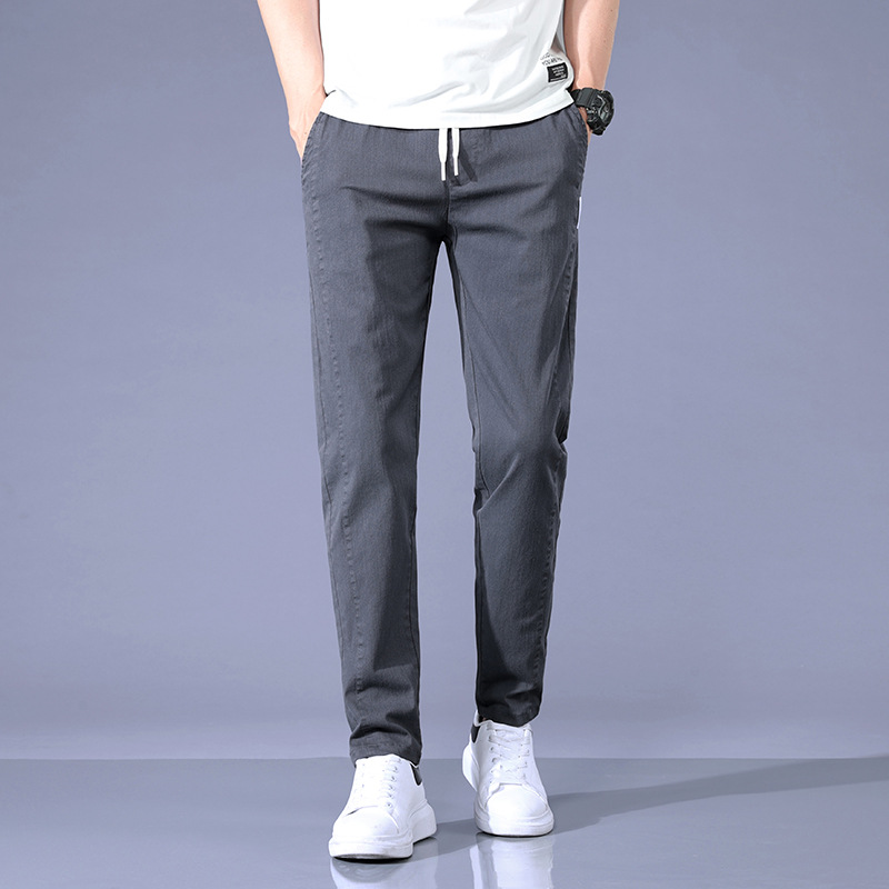 여름 얇은 비즈니스 캐주얼 바지 남성 청소년 느슨한 탄성 캐주얼 긴 바지 남성 레이스 업 허리 도매스토어 가기