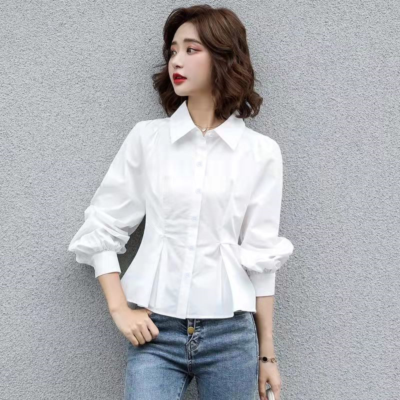 봄과 가을 새 옷깃 일본식 우아한 통근 슬림핏 가디건 싱글 브레스트 솔리드 컬러 화이트 긴팔 셔츠 탑스토어 가기