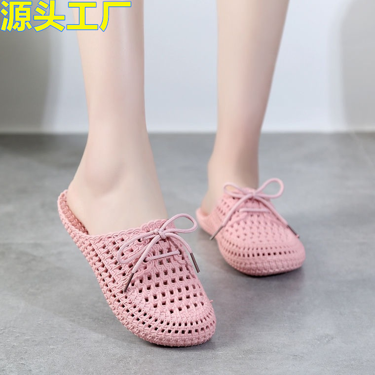 여름 복장 학생 패션 한국 스타일 신발 끈 슬리퍼 구멍 신발 멋진 통기성 여성 복장 캐주얼 슬리퍼 여성
